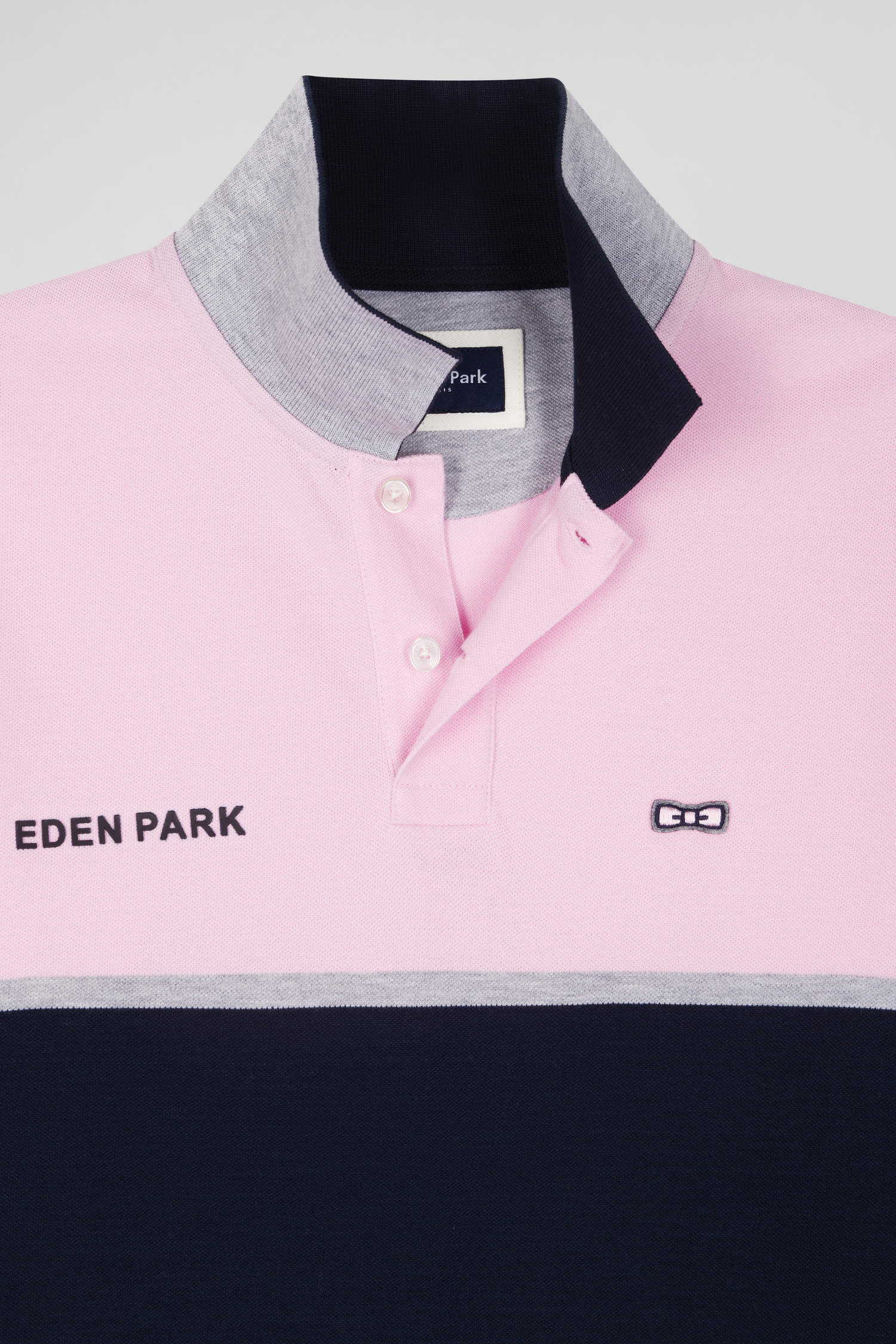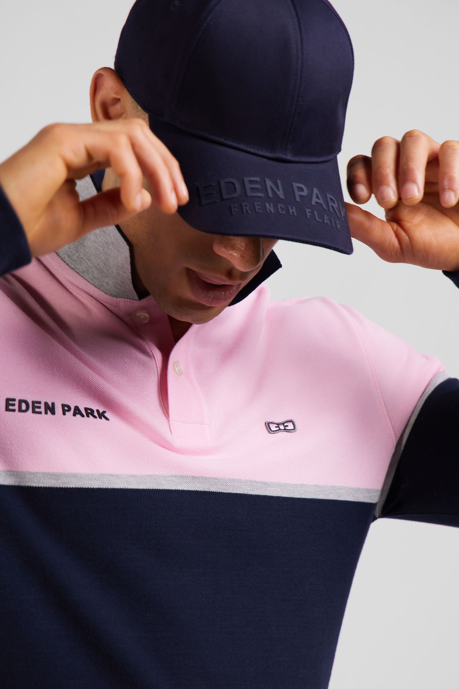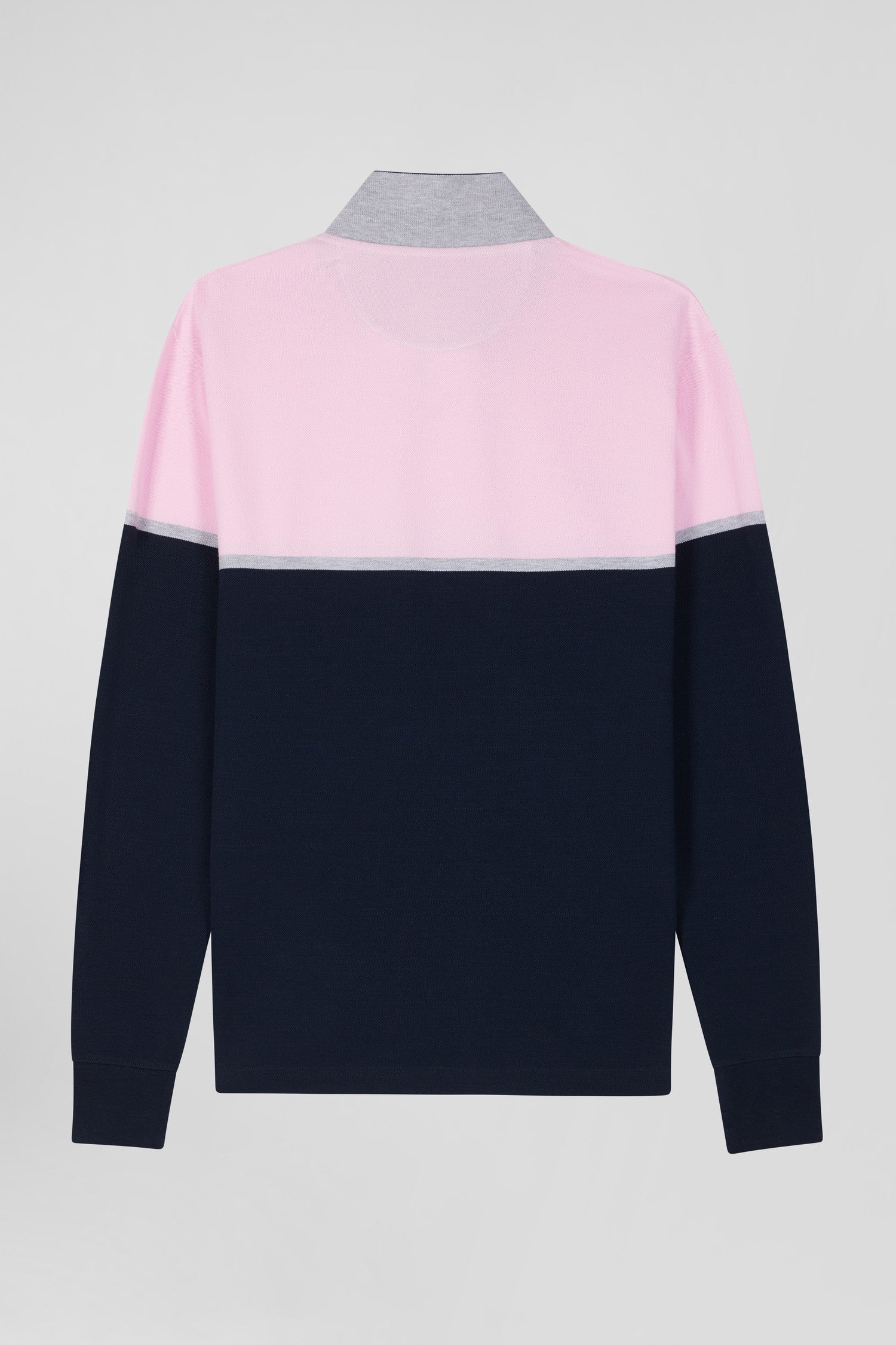 Polo manches longues bicolore en piqué coton bleu marine coupe Regular