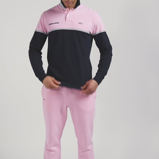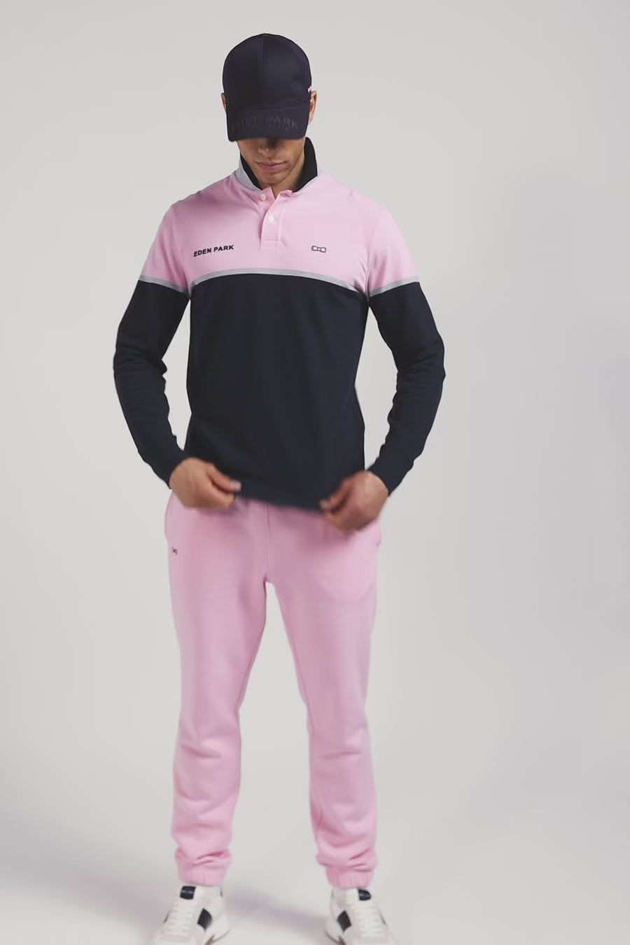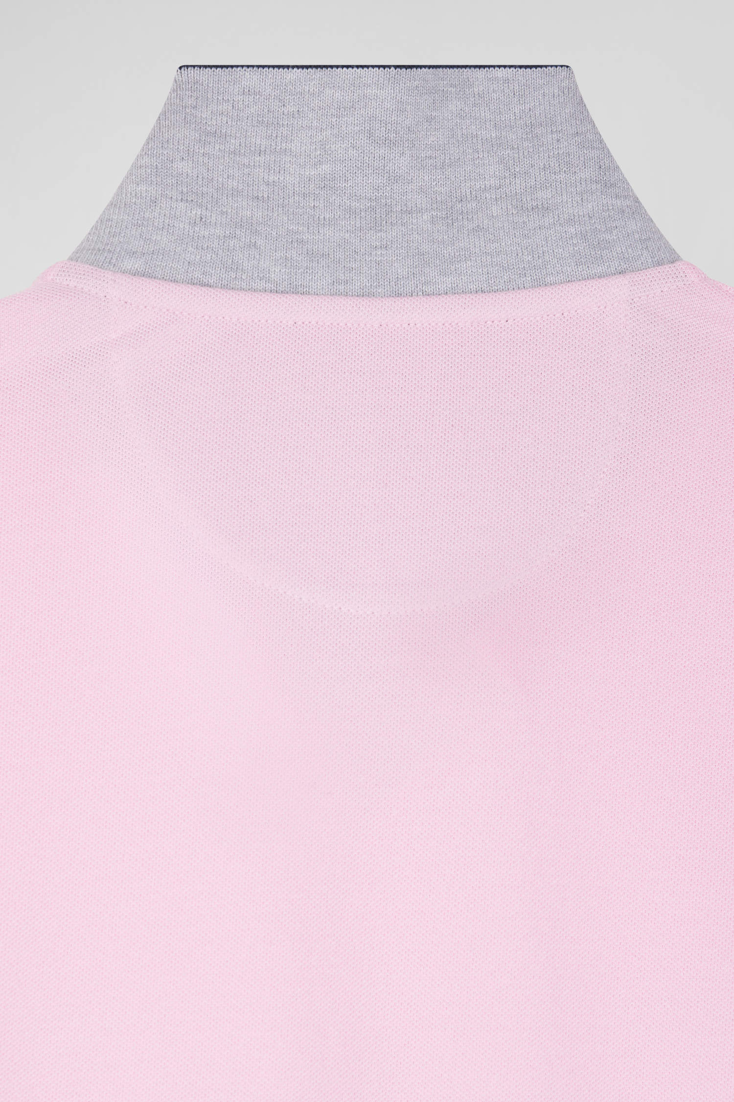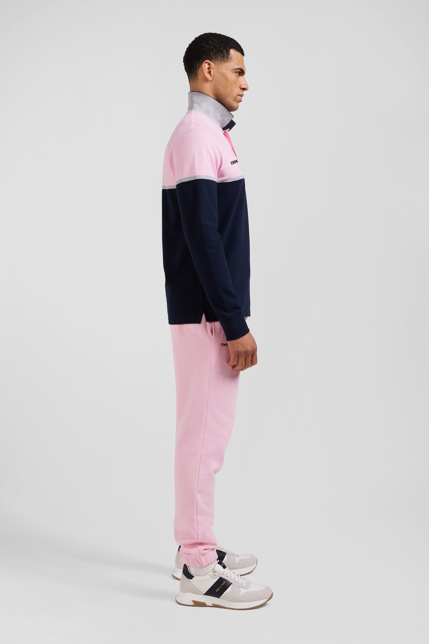 Polo manches longues bicolore en piqué coton bleu marine coupe Regular