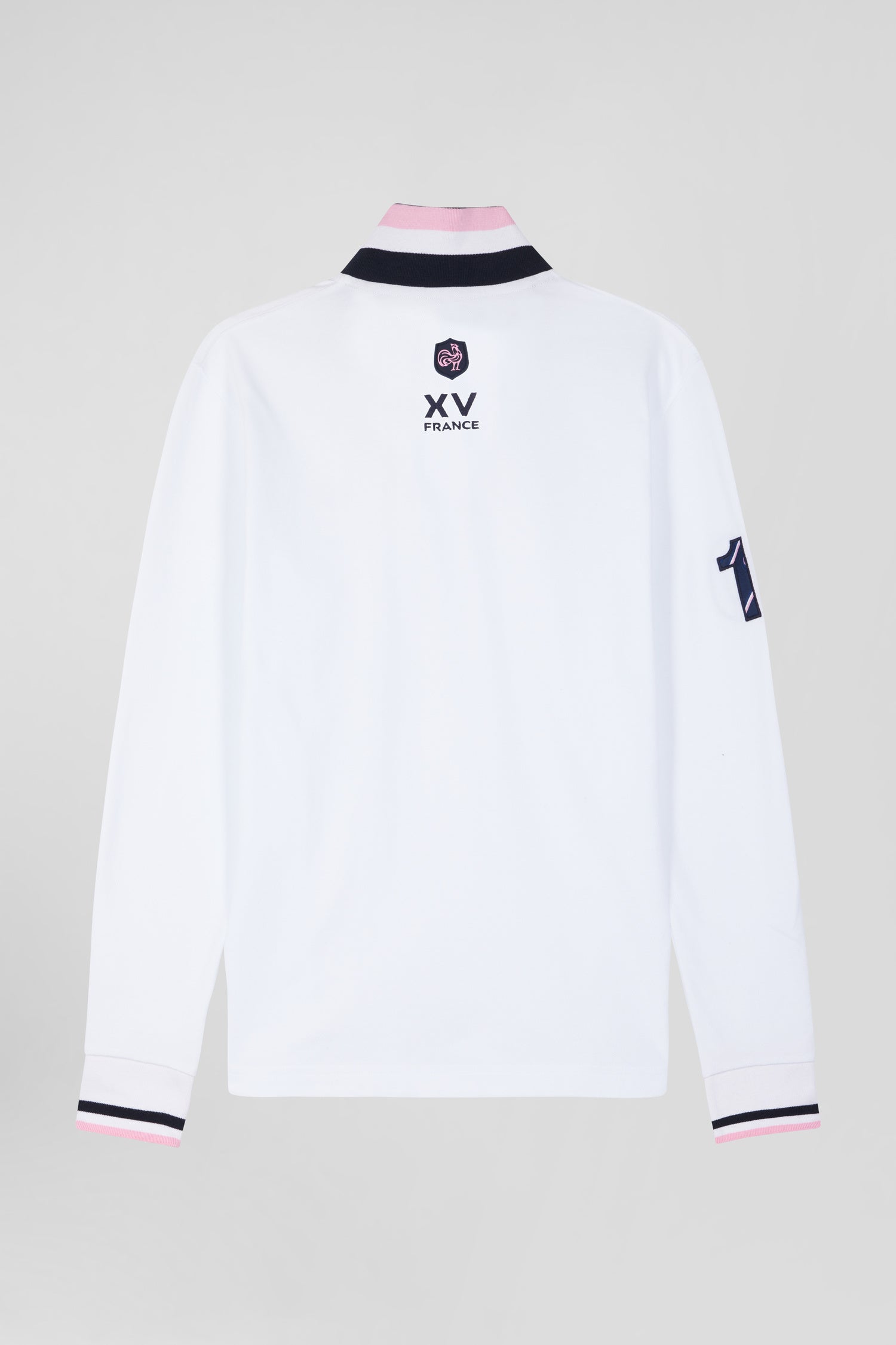 Polo manches longues en piqué coton blanc broderie XV de France coupe Regular