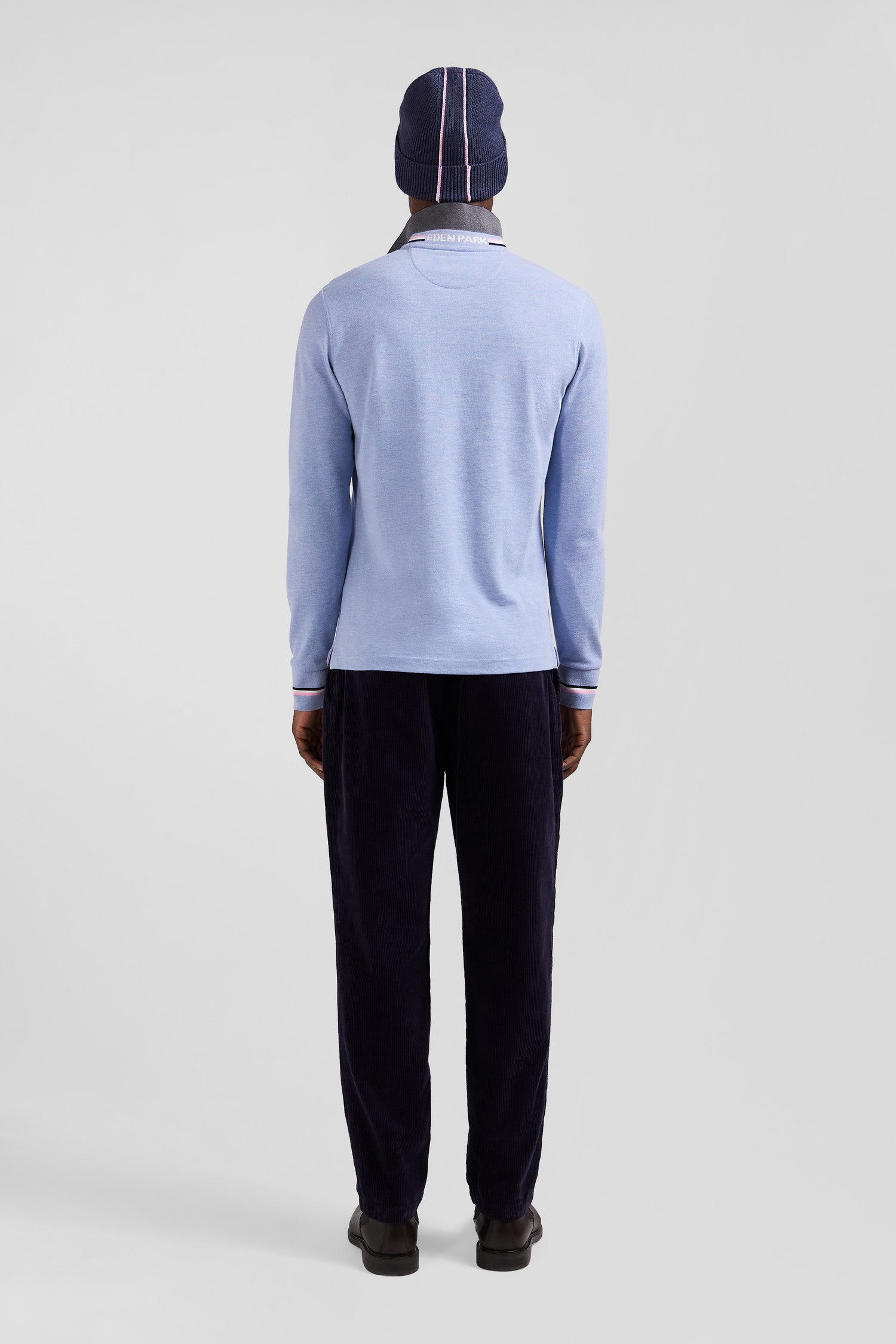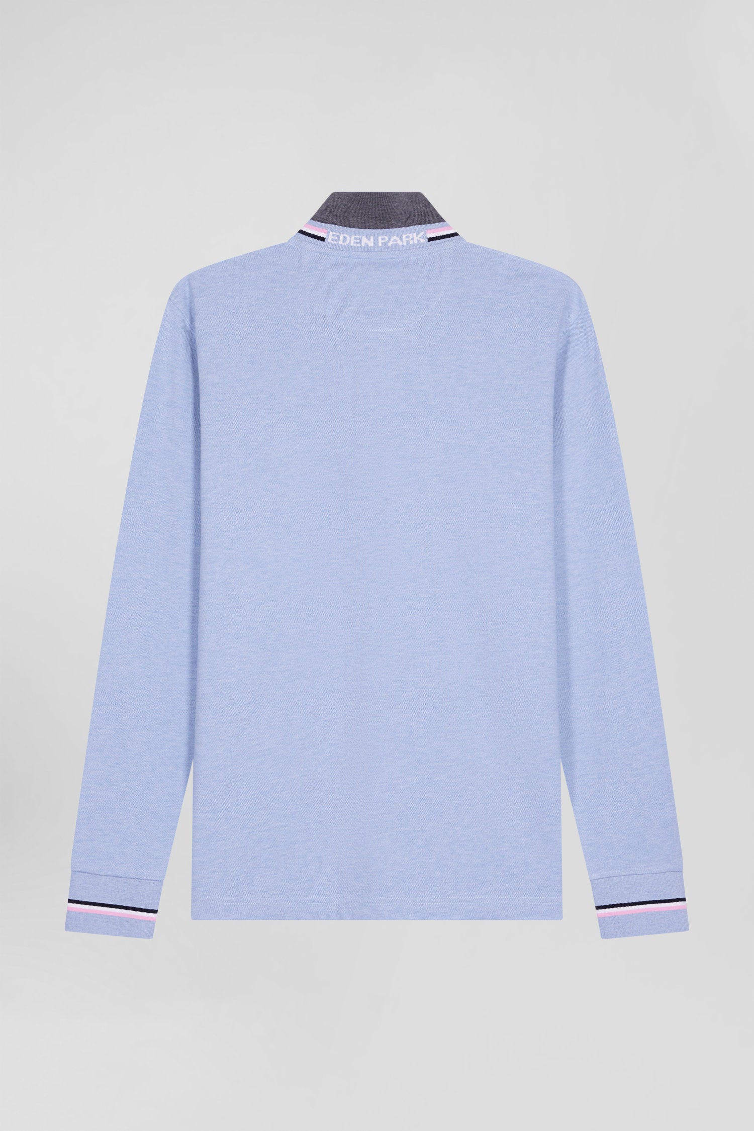 Polo manches longues en piqué coton ciel écusson gomme coupe Regular