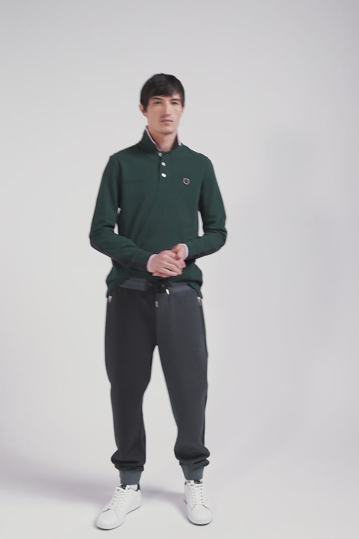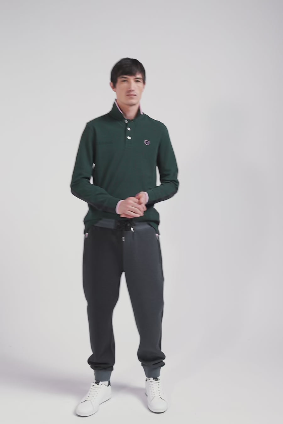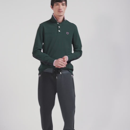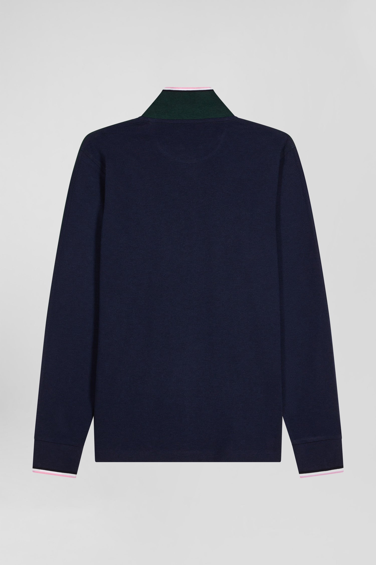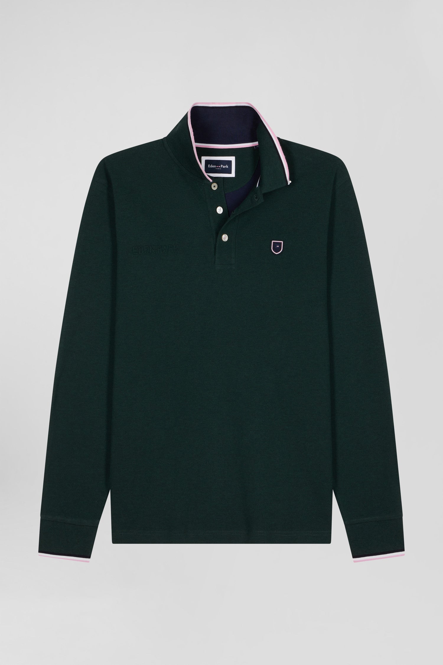 Polo manches longues en piqué coton vert détails tricolores coupe Regular