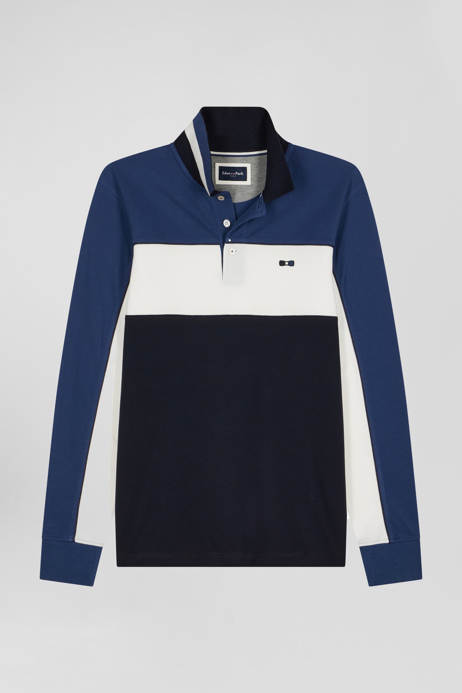Au sein des équipes Eden Park, le polo colorblock est devenu une valeur sûre. Ce modèle à manches longues se distingue à la fois par ses jeux de couleurs graphiques et par sa broderie poitrine tricolore, emblème de notre maison.