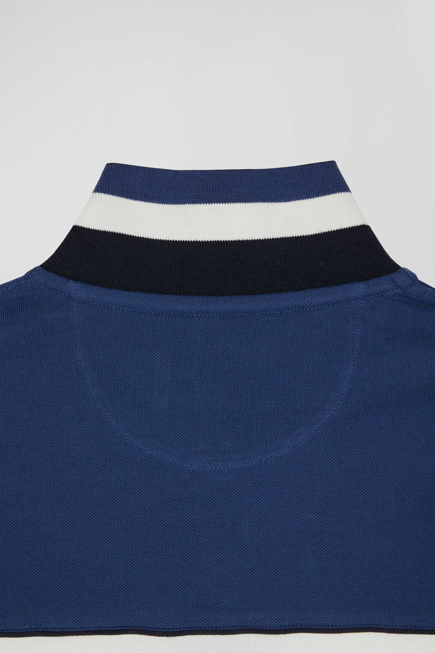 Polo manches longues tricolore en piqué coton bleu coupe Regular