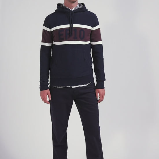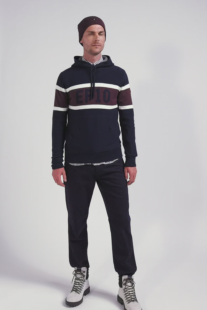 Pull à capuche en coton bleu marine jacquard EP10 coupe Regular