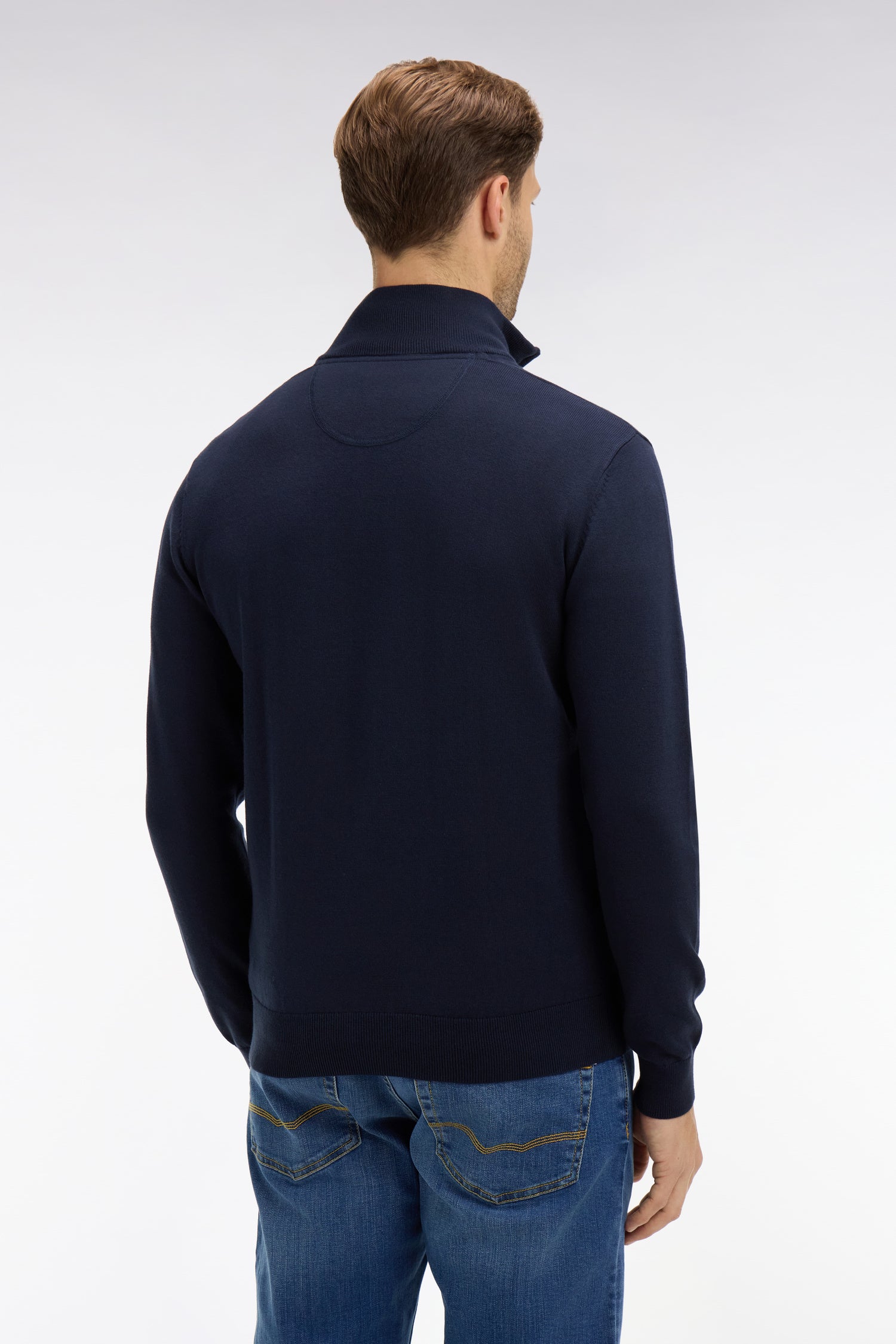 Pull bleu marine à col camionneur en coton