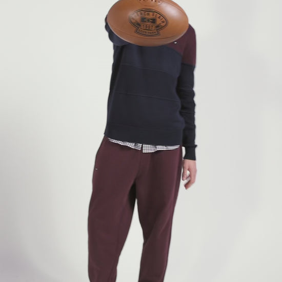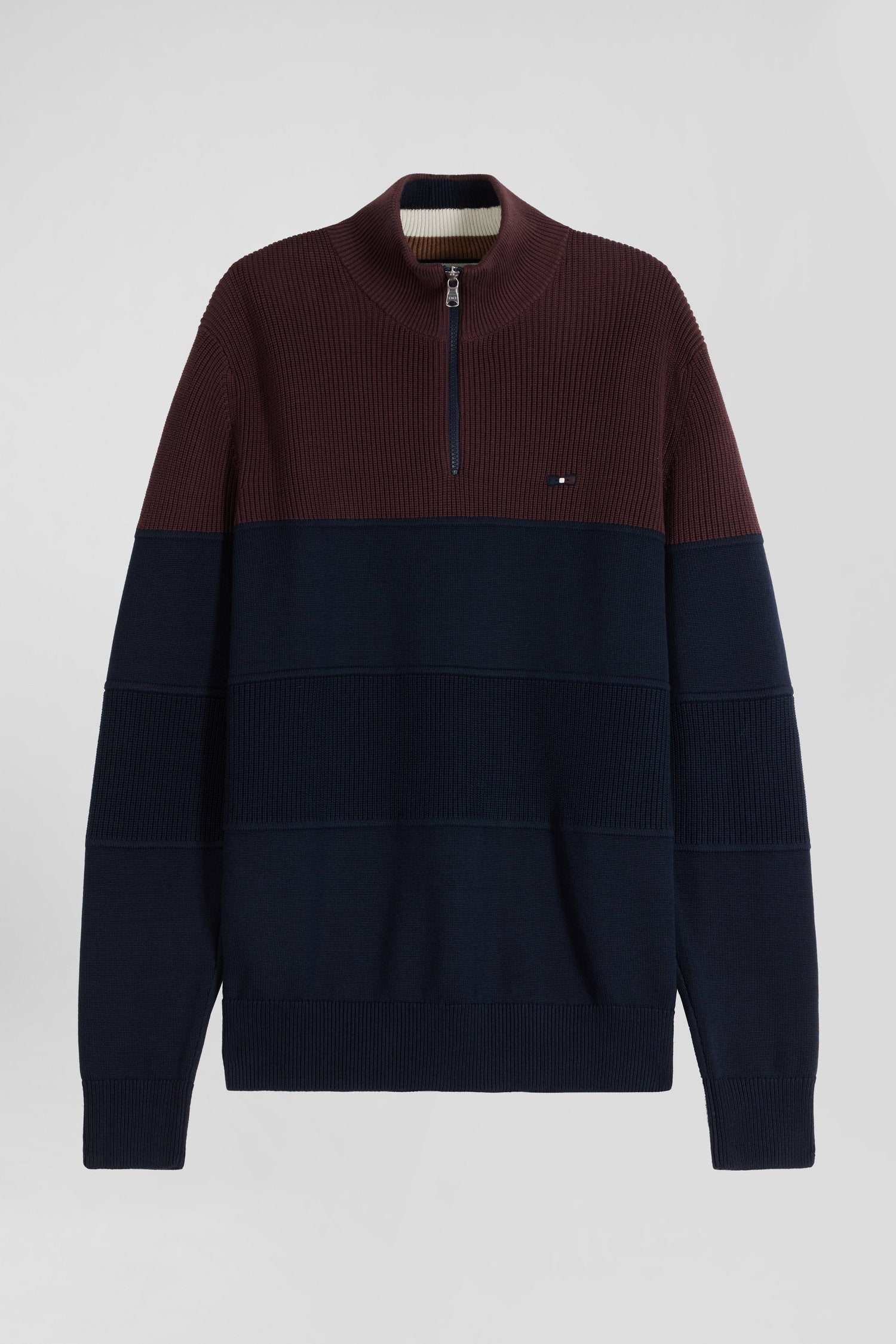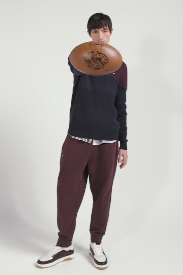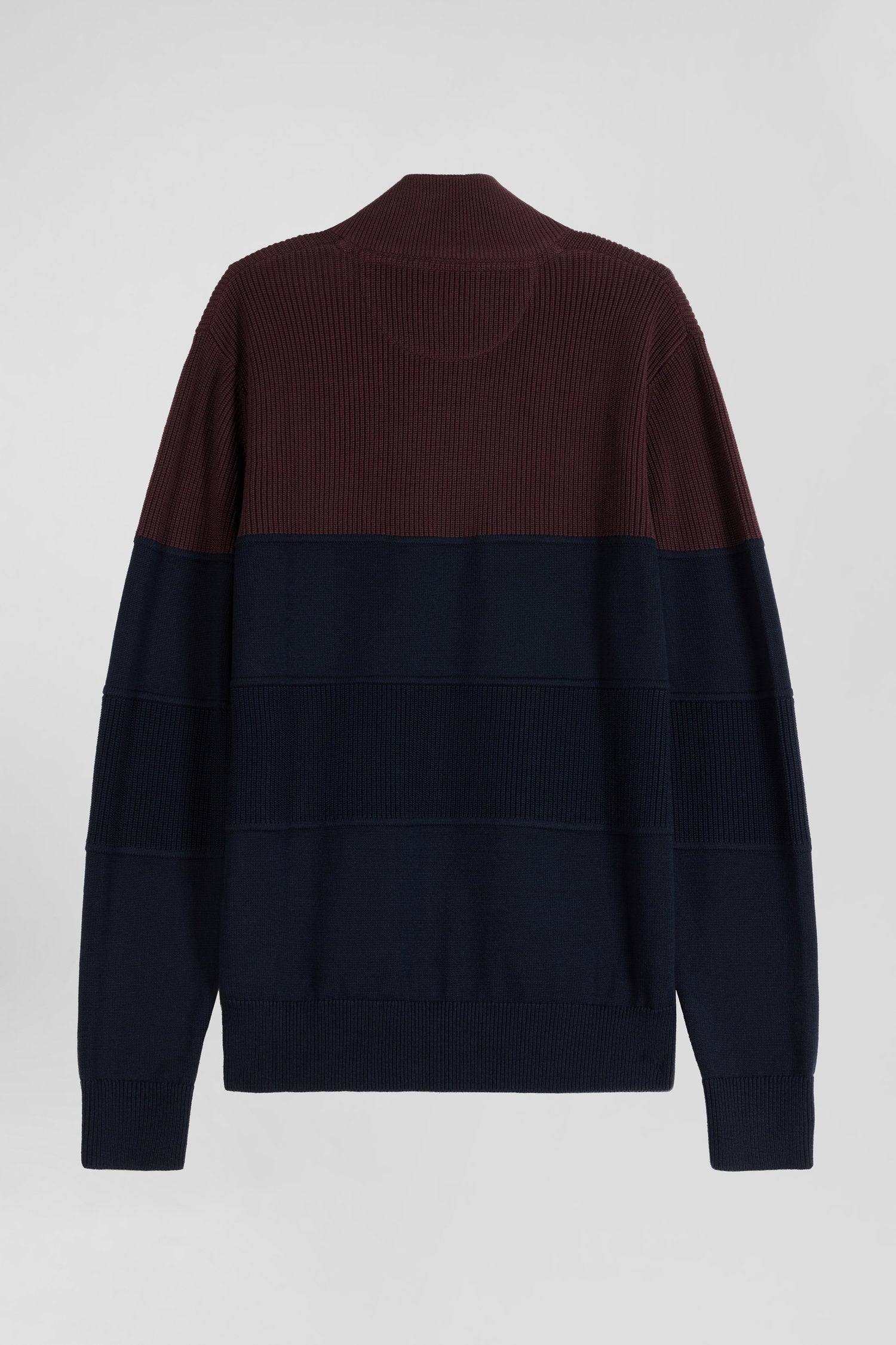 Pull col camionneur en coton bordeaux à jeux de maille coupe Regular