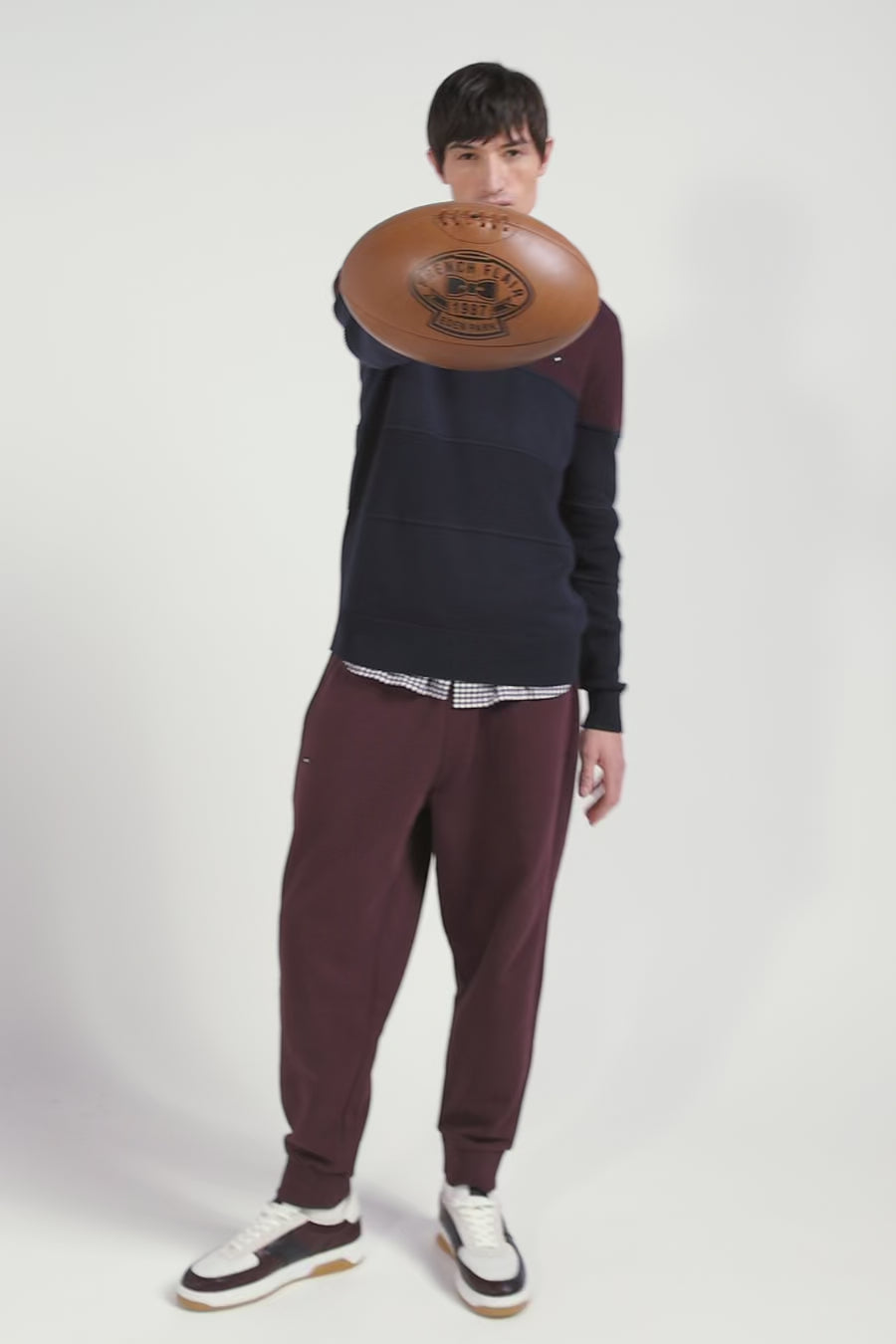 Baskets en cuir bleu marine et bordeaux