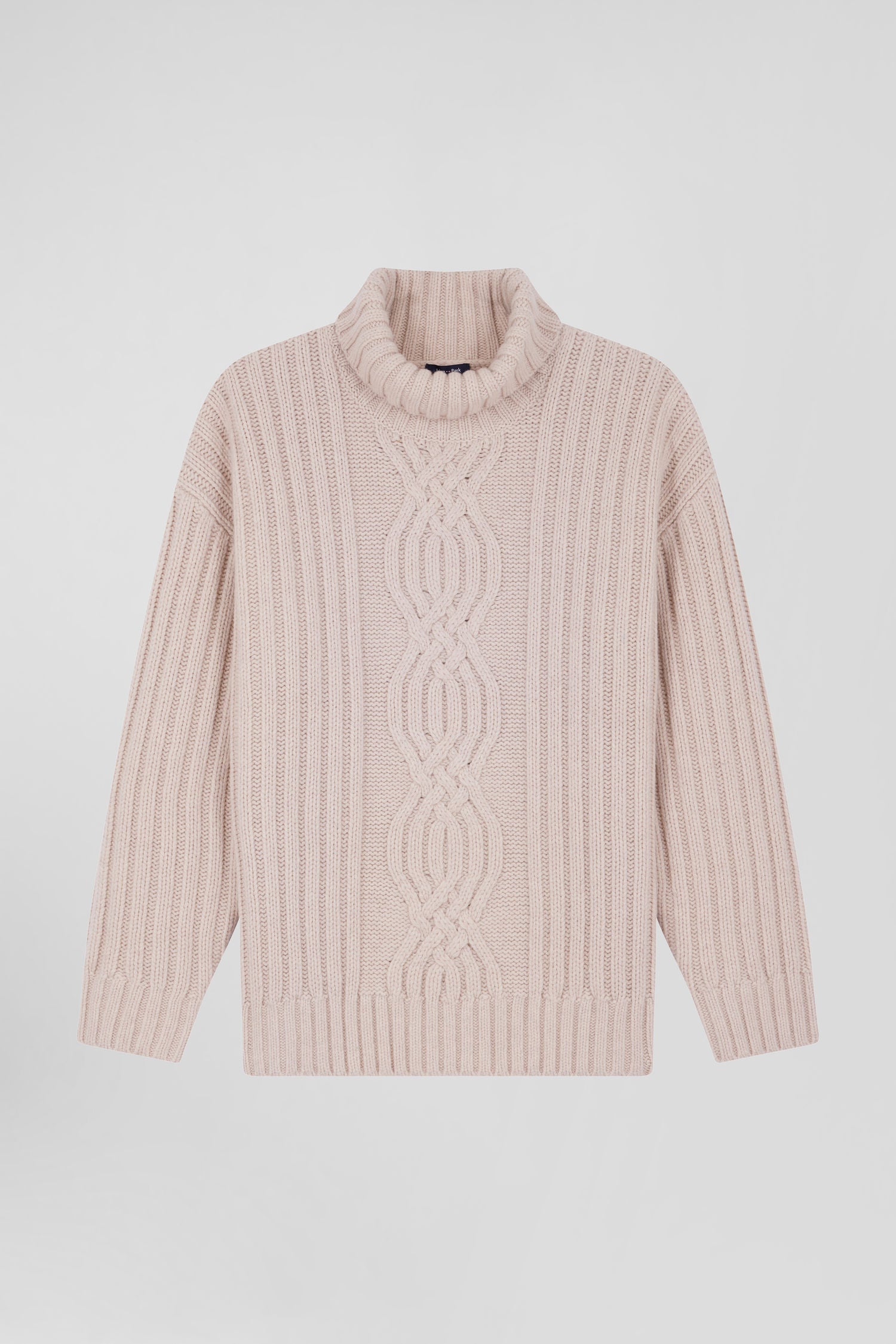 Pull col cheminée en laine mélangée effet nœud ivoire coupe Oversized