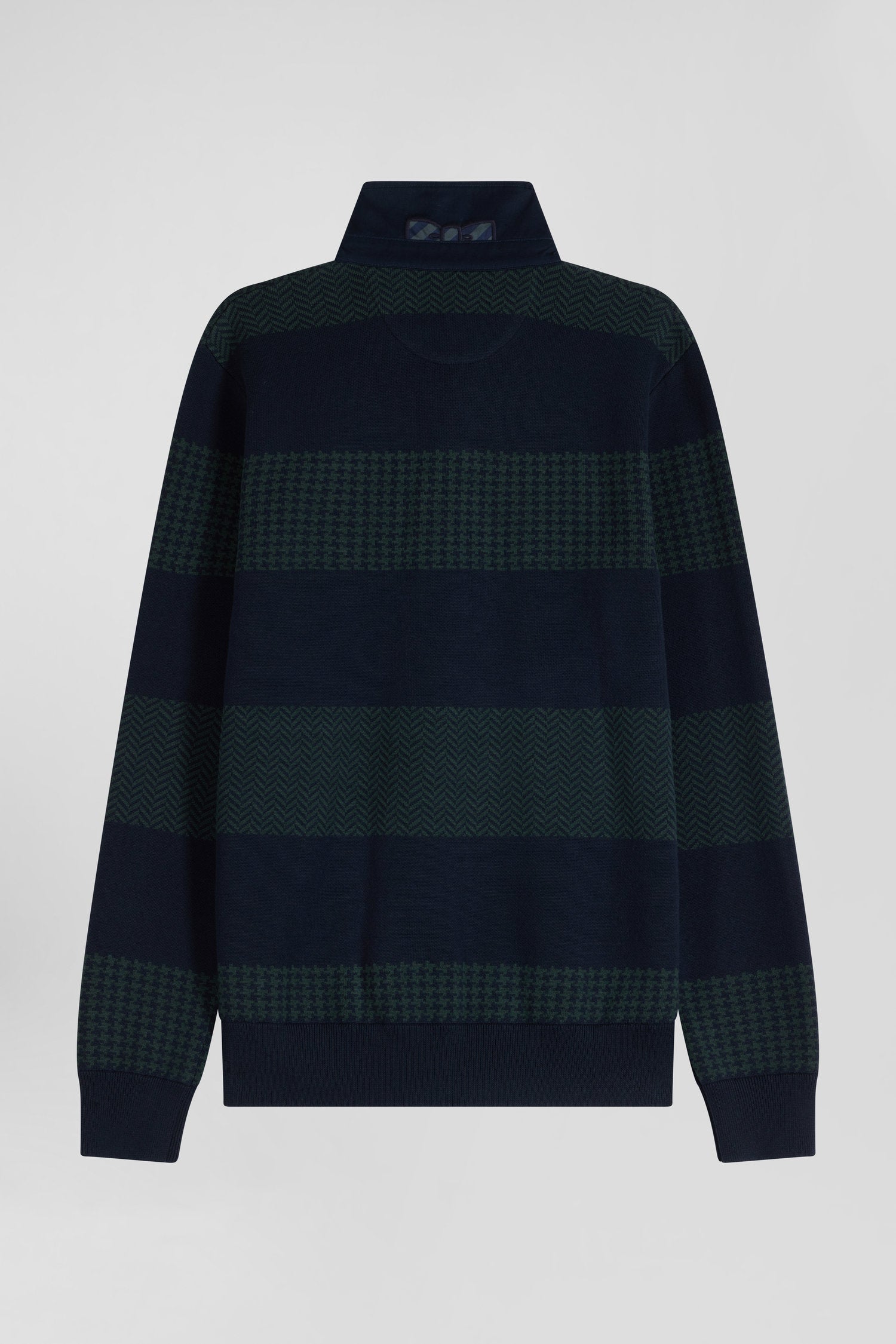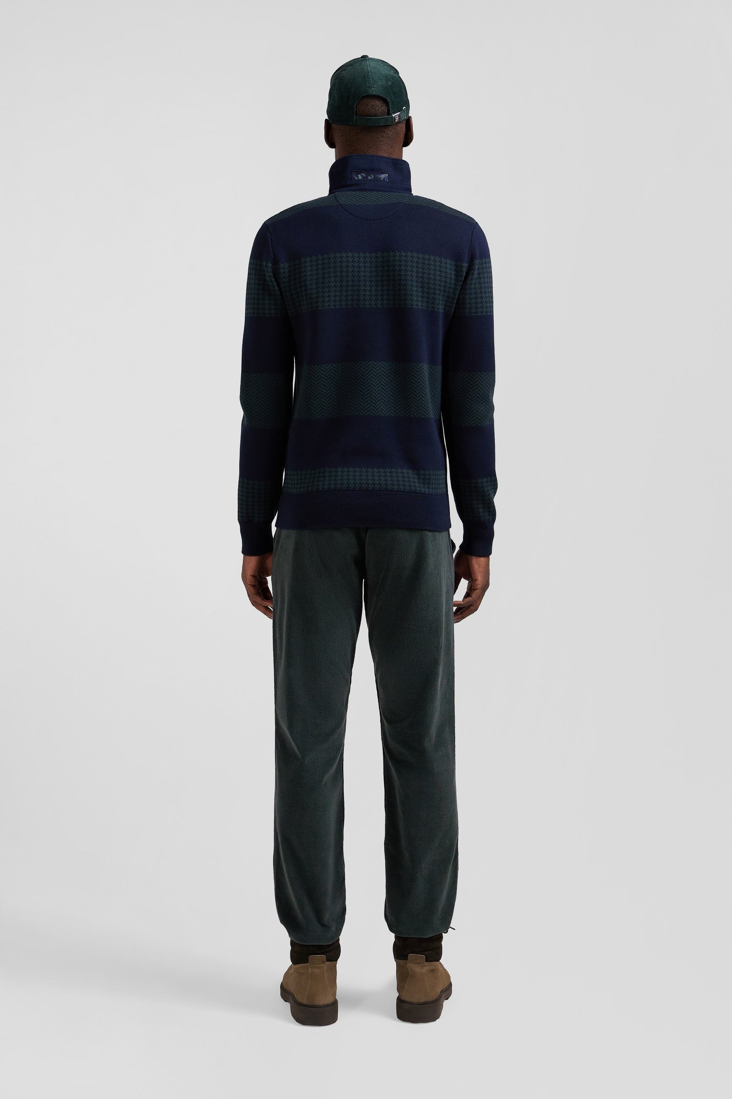 Pull col maillot en coton vert cerclé coupe Regular jacquard pied-de-poule