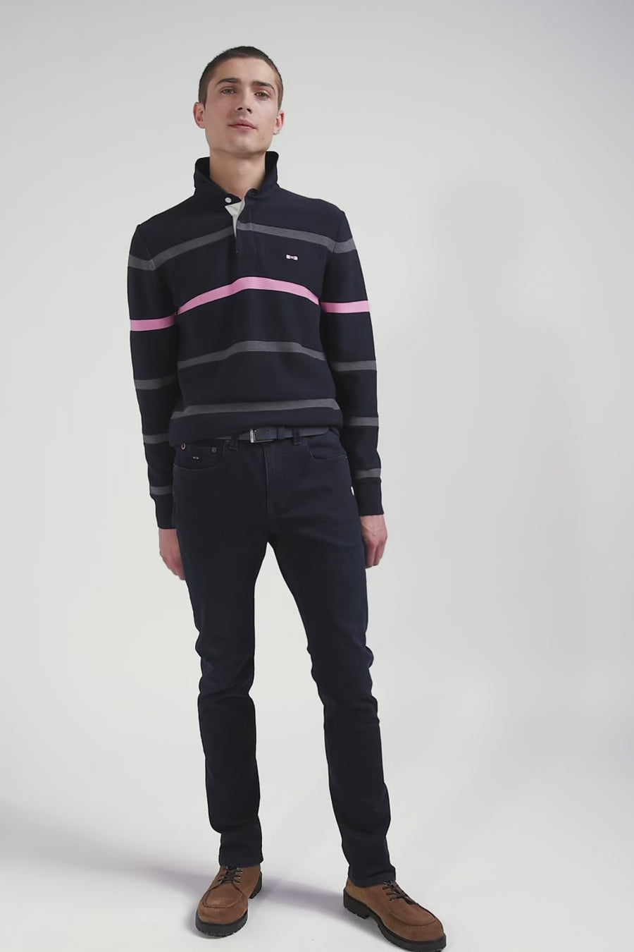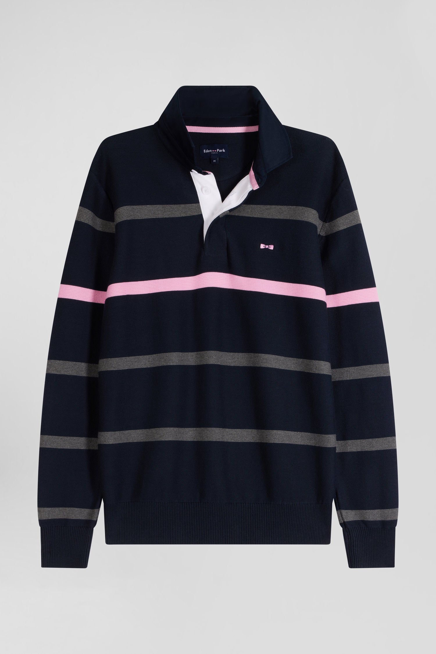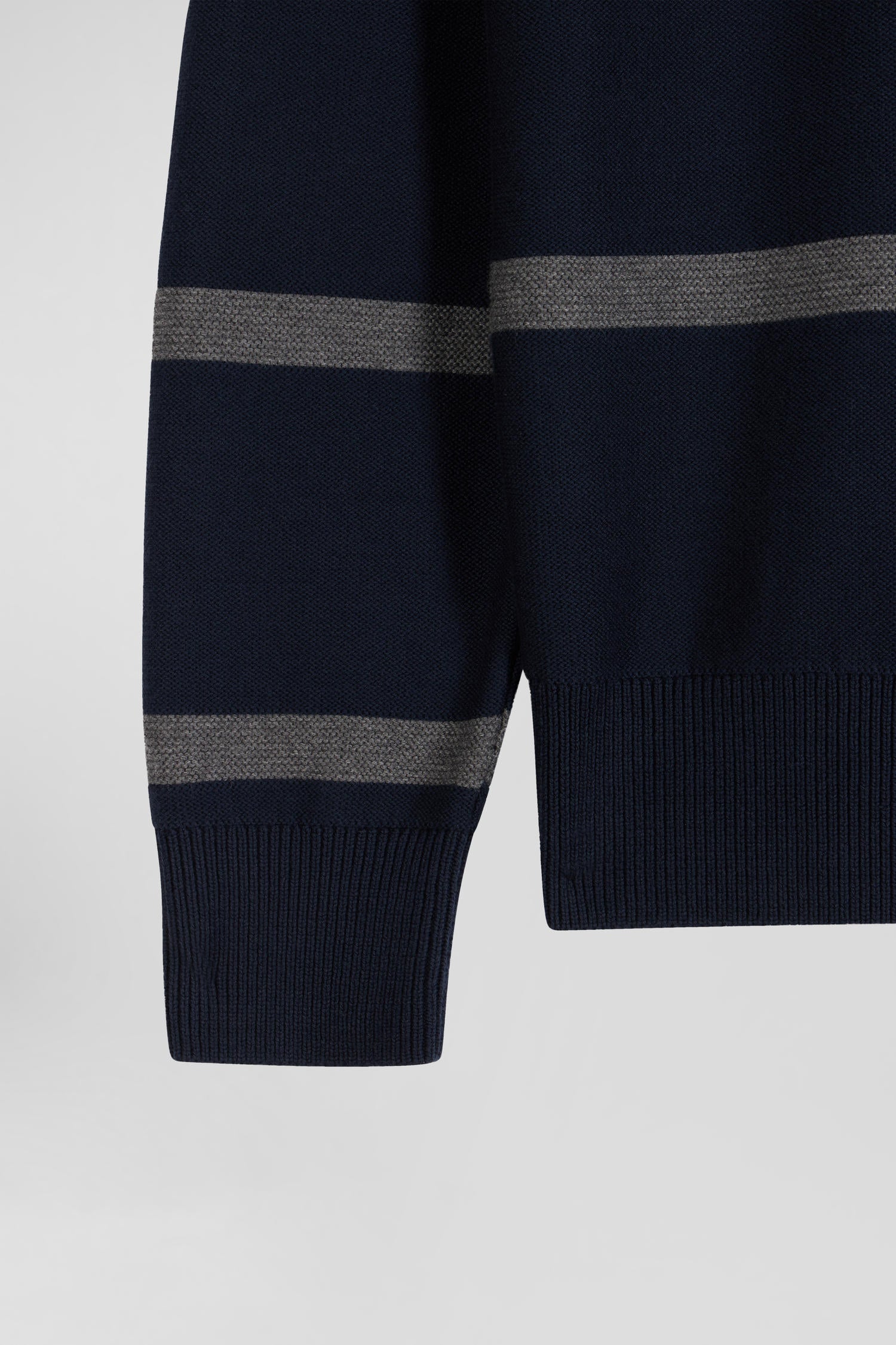 Ce pull homme à col maillot en twill de coton est une pièce forte de la saison. Il se dote d'une bande de propreté en tissage herringbone et se distingue par ses rayures en point Ottoman contrastantes. Le corps et les manches en point jersey envers sont mis en valeur par une large bande contrastante sur la poitrine pour une allure audacieuse typique de l'esprit French Flair d'Eden Park.