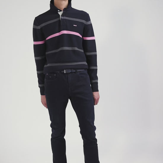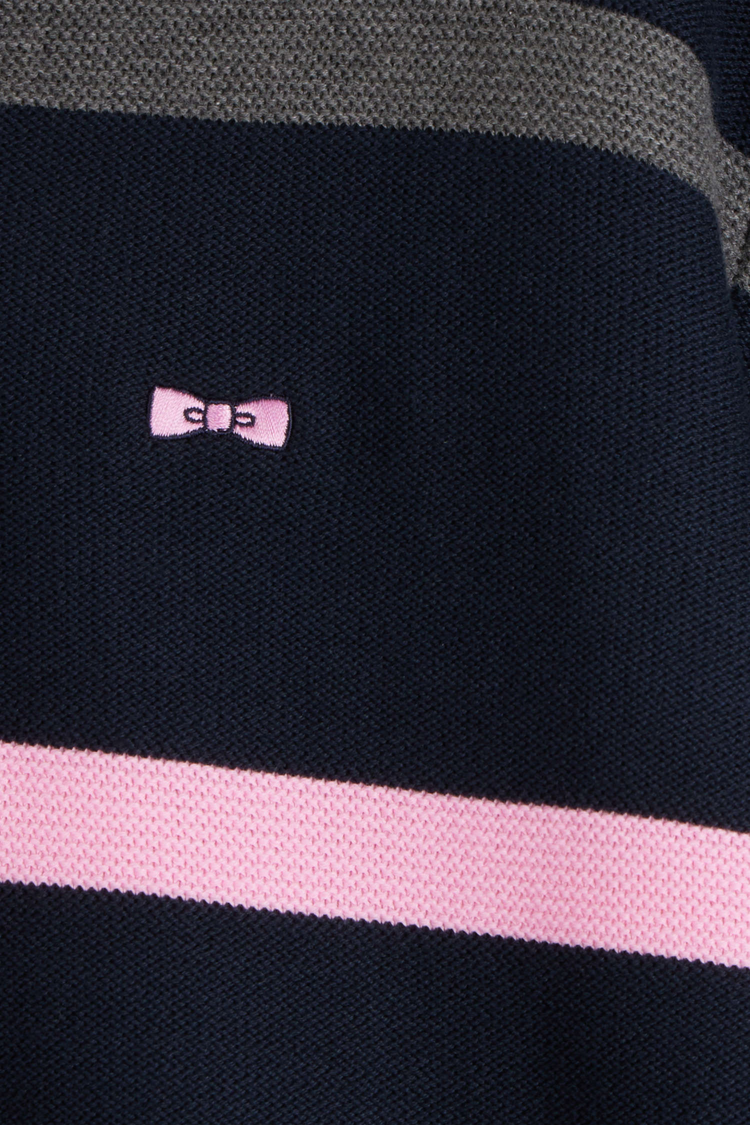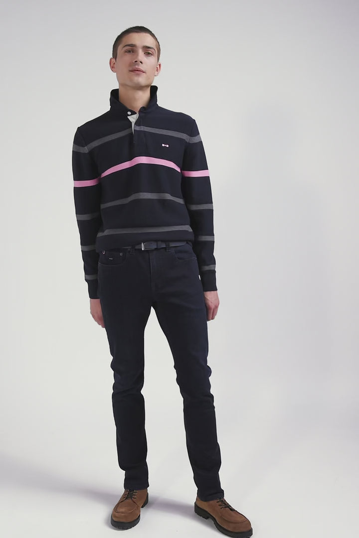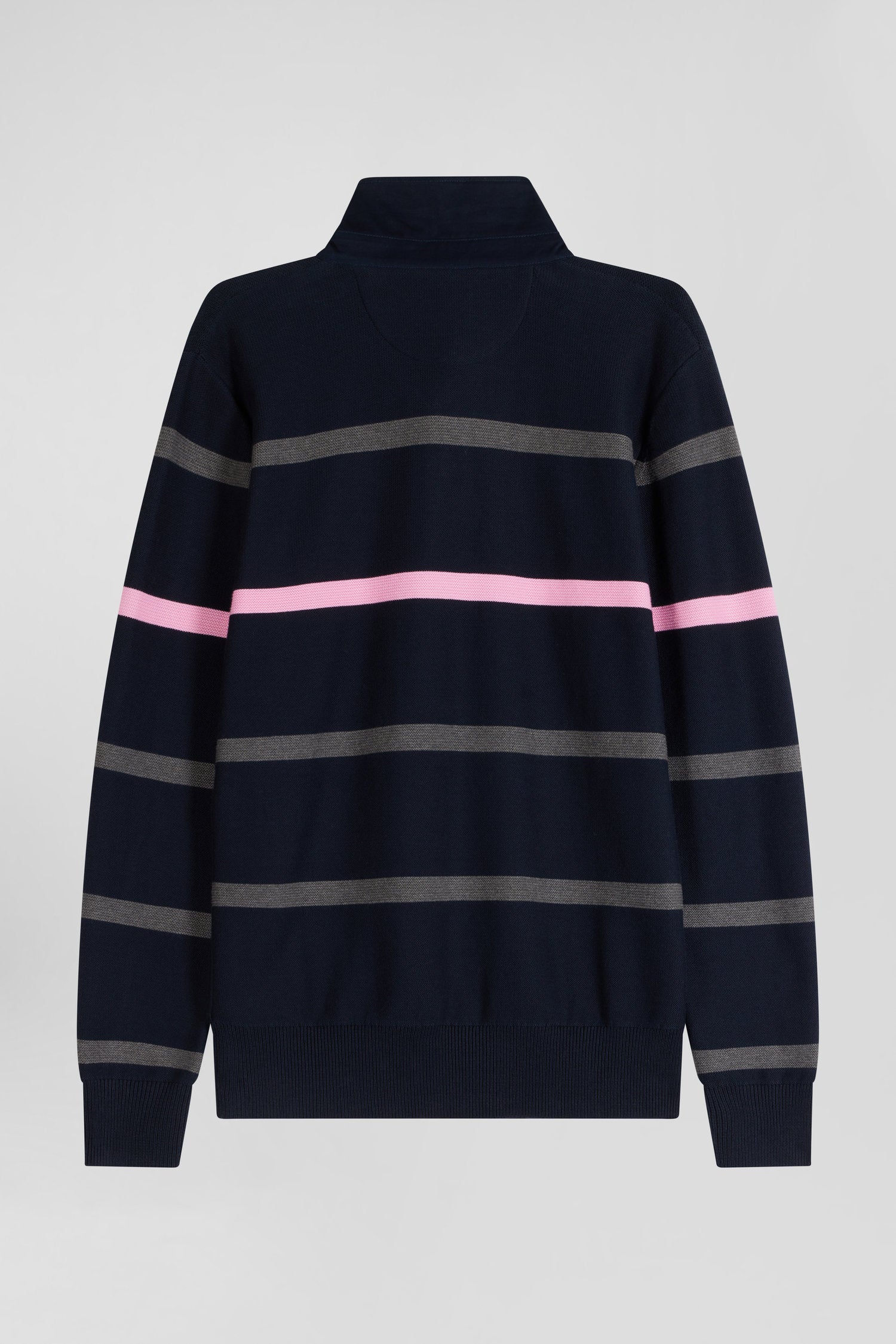 Ce pull homme à col maillot en twill de coton est une pièce forte de la saison. Il se dote d'une bande de propreté en tissage herringbone et se distingue par ses rayures en point Ottoman contrastantes. Le corps et les manches en point jersey envers sont mis en valeur par une large bande contrastante sur la poitrine pour une allure audacieuse typique de l'esprit French Flair d'Eden Park.