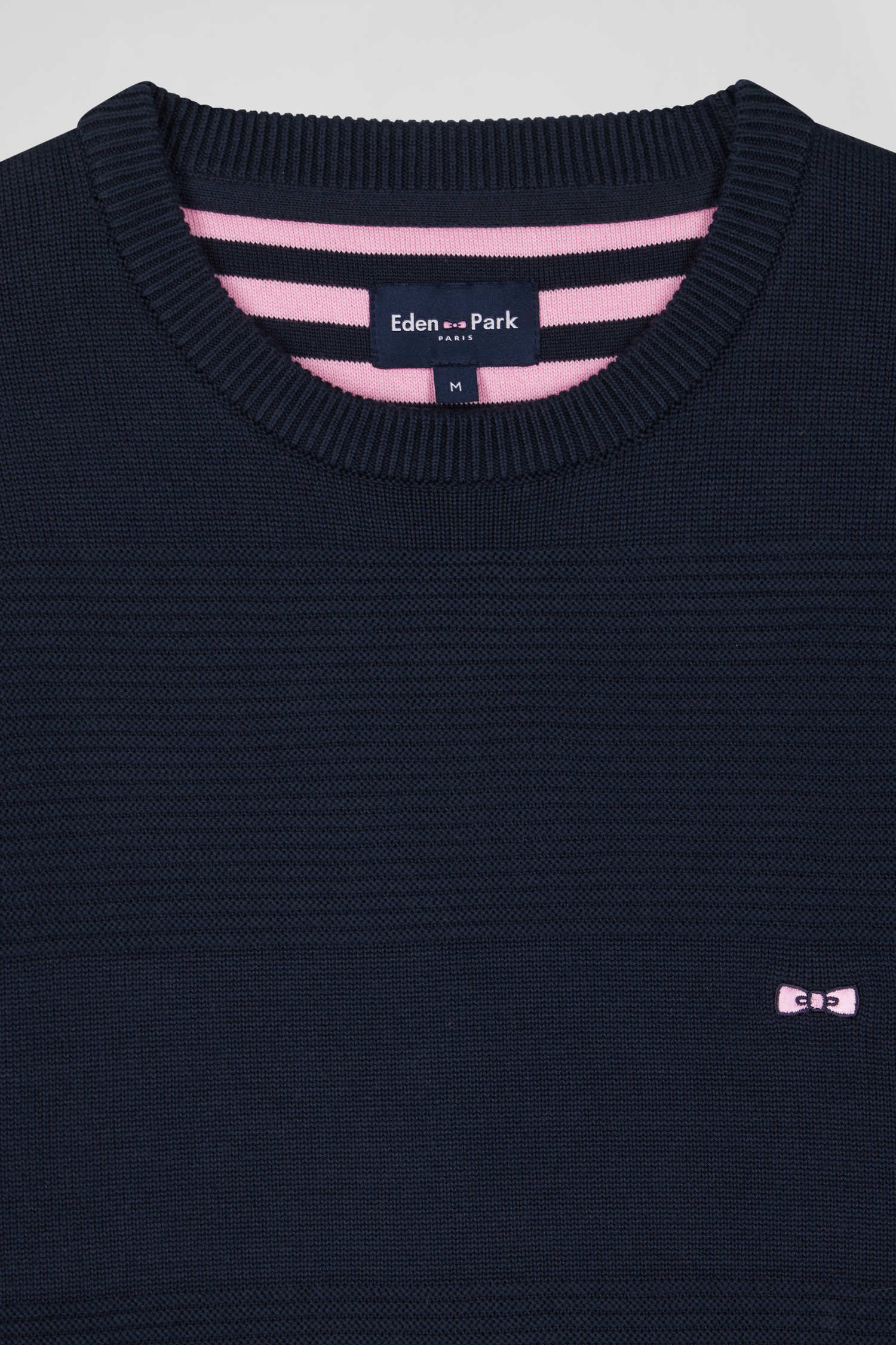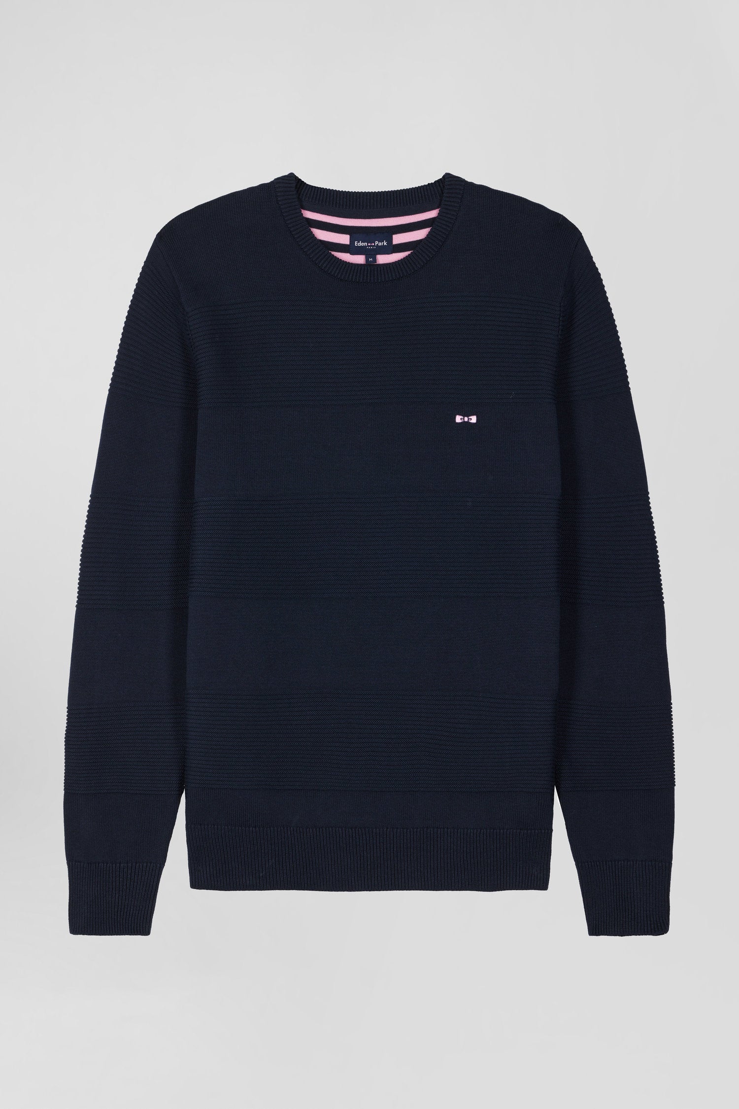 Pull col rond en coton bleu marine à jeux de maille coupe Regular