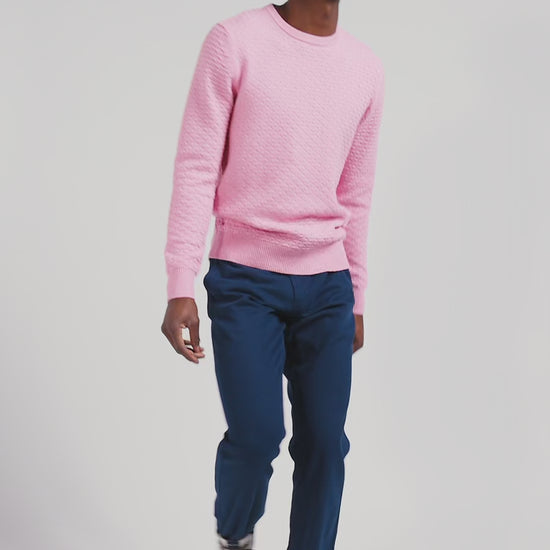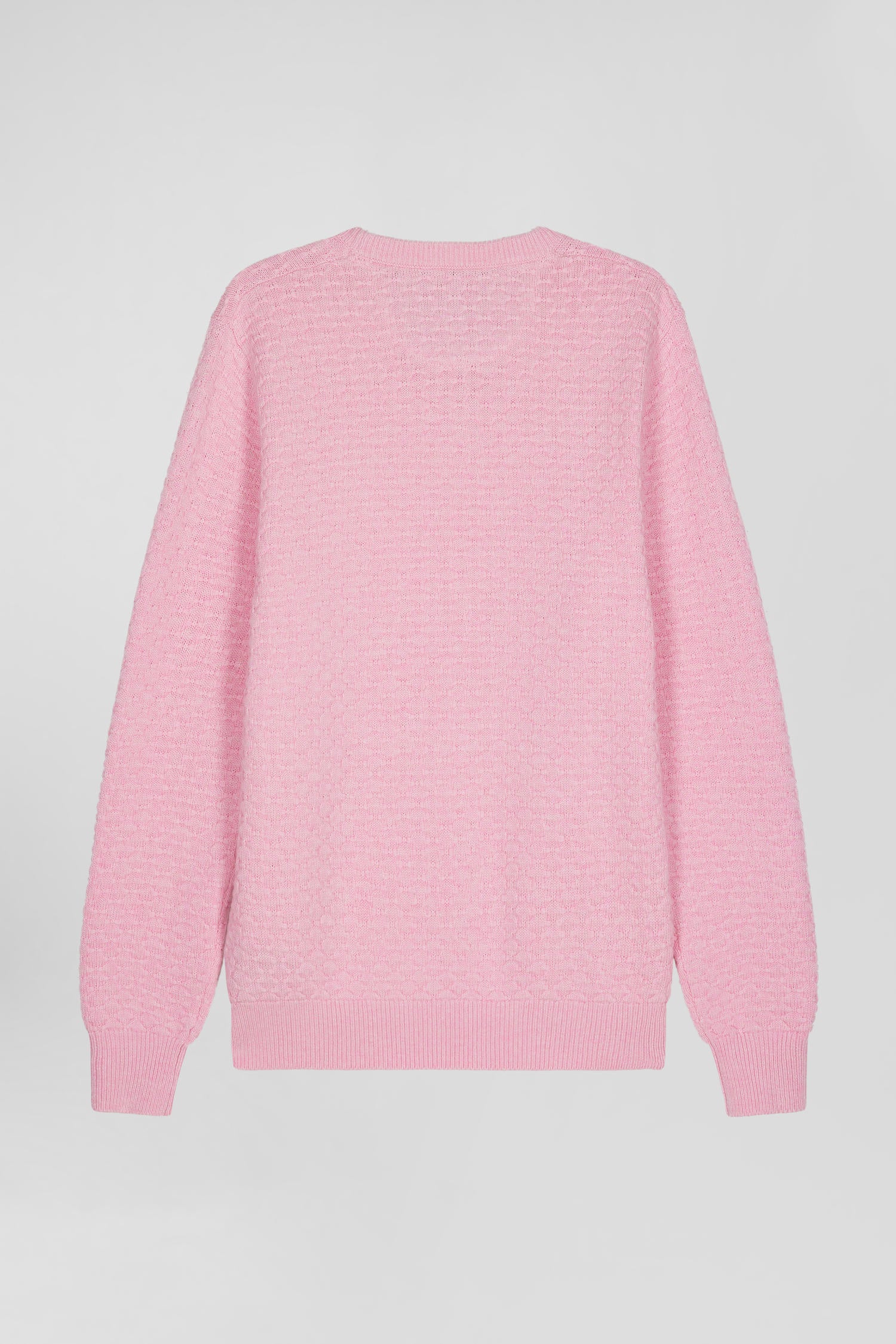 Pull col rond en laine et coton rose coupe Regular effet micro nœud papillon