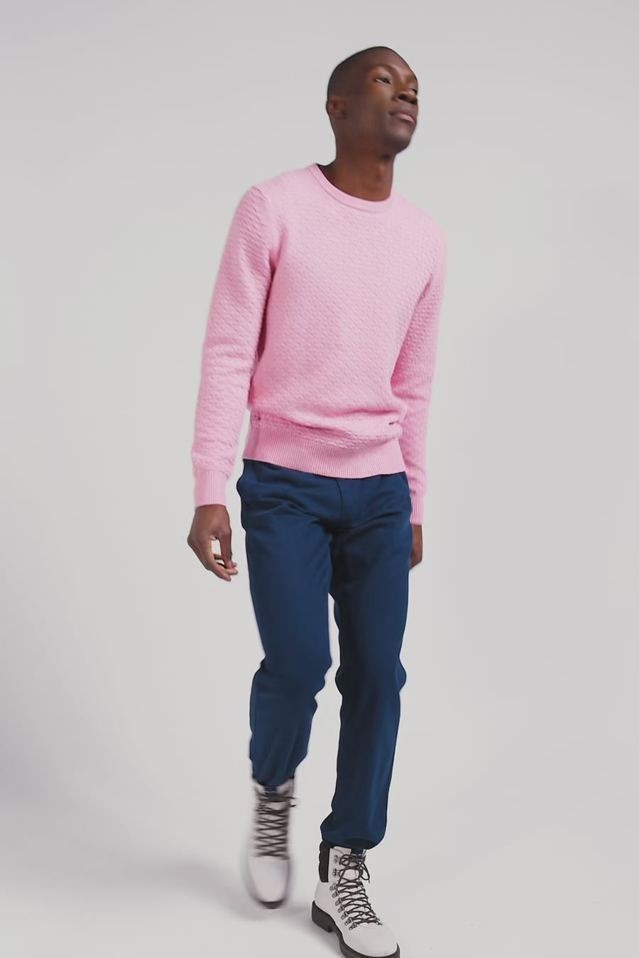 Notre pull col rond, confectionné dans un mélange de fibres de laine et coton, présente un motif texturé micro nœud papillon, l'emblème distinctif d'Eden Park. Cette maille exclusive revisite notre logo de manière subtile et élégante, pour un effet allover qui allie discrétion et caractère. Ce pull doux, décliné dans 3 coloris, est une célébration de l'identité de notre Maison comme de l'élégance masculine.