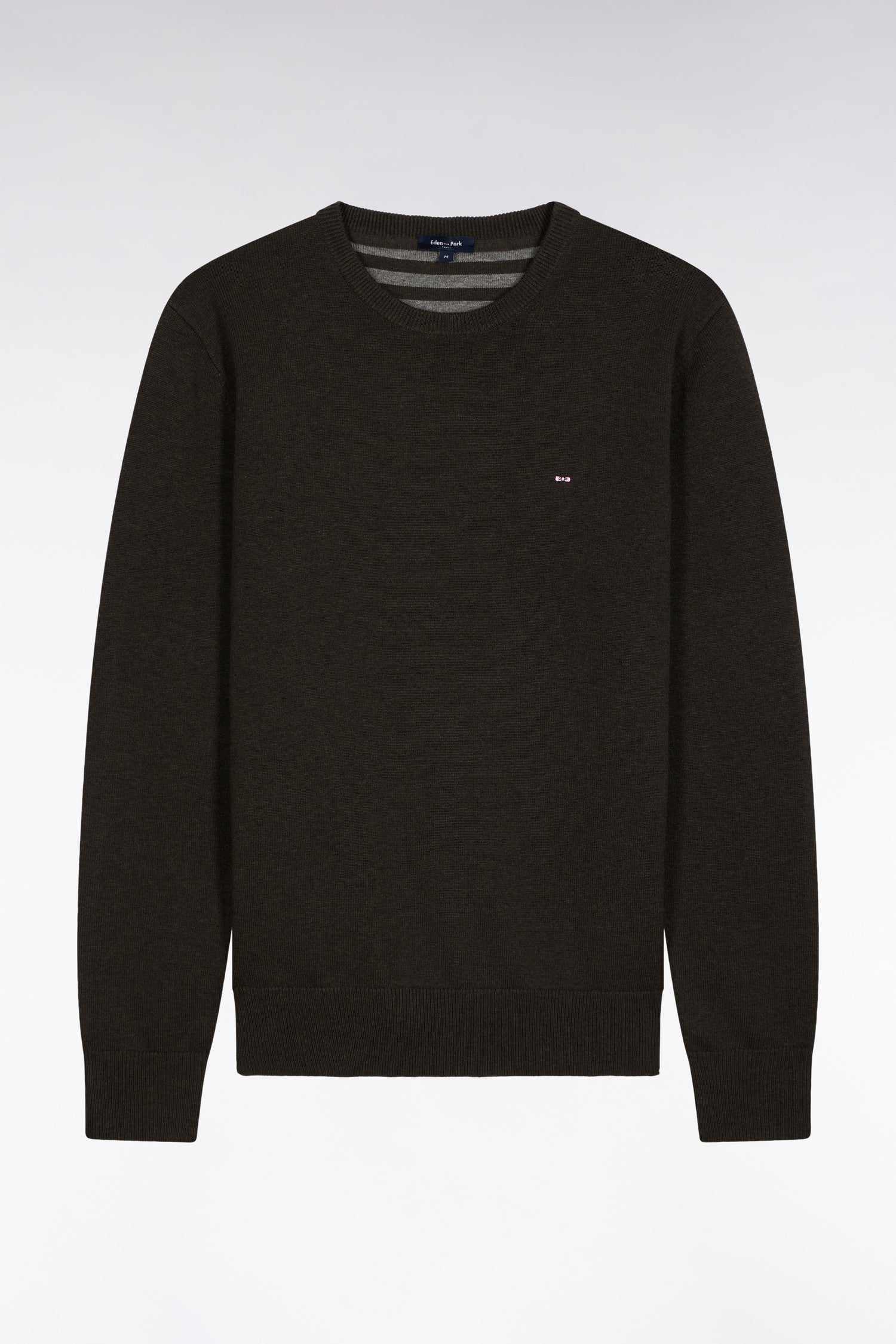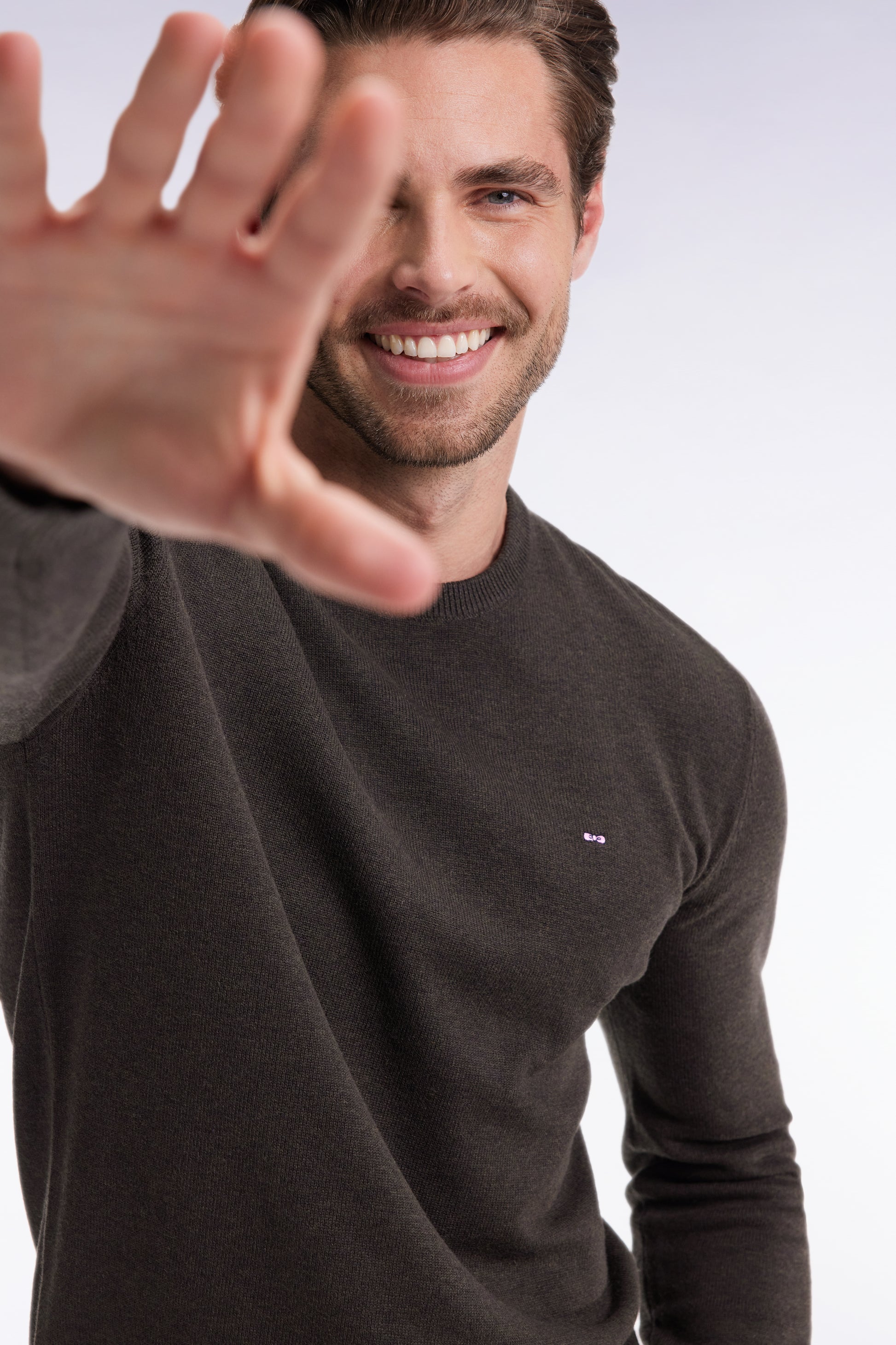 Ce pull à col rond joue la carte de l’intemporalité avec sa coupe droite et son tricot en laine et coton mélangés. Une broderie nœud papillon sur la poitrine et une demi-lune intérieur à rayures rugby signe discrètement son appartenance au vestiaire Eden Park. Facile à associer à une chemise ou à un T-shirt, ce pull décliné dans une riche palette de coloris accompagne toutes vos silhouettes de saison