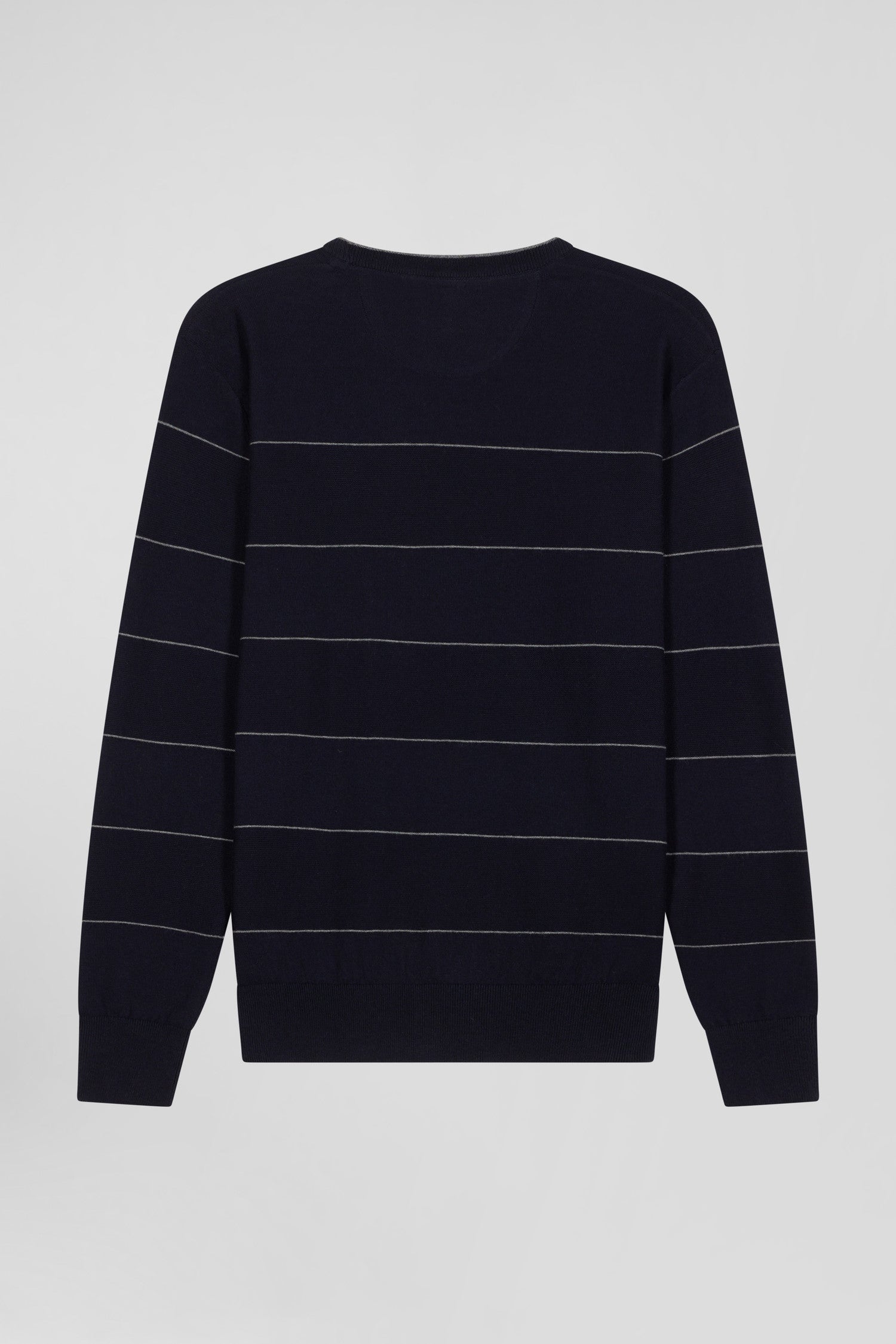 Pull col rond rayé en coton et cachemire bleu marine coupe Regular