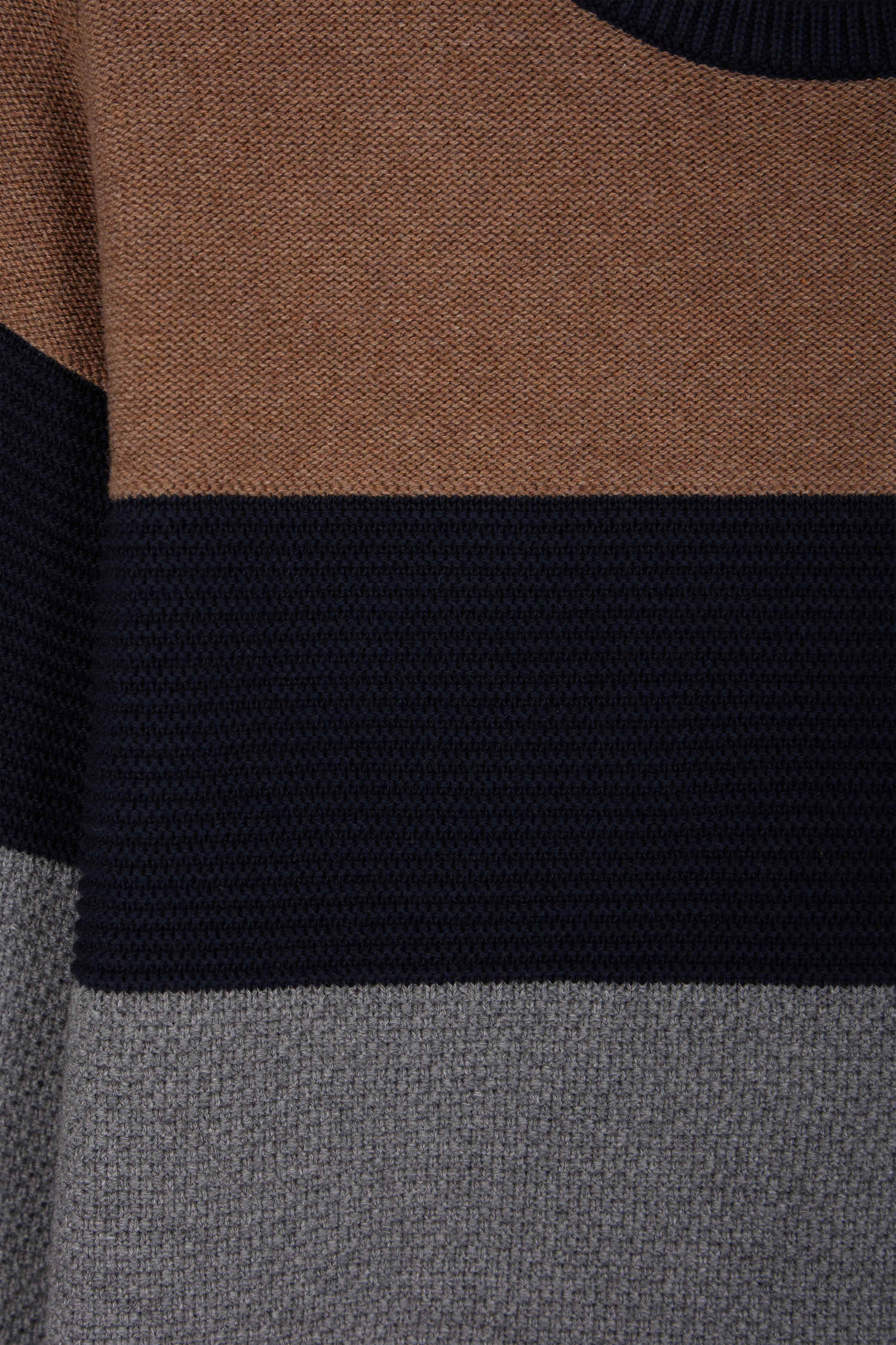 Pull col rond tricolore en coton noisette coupe Regular