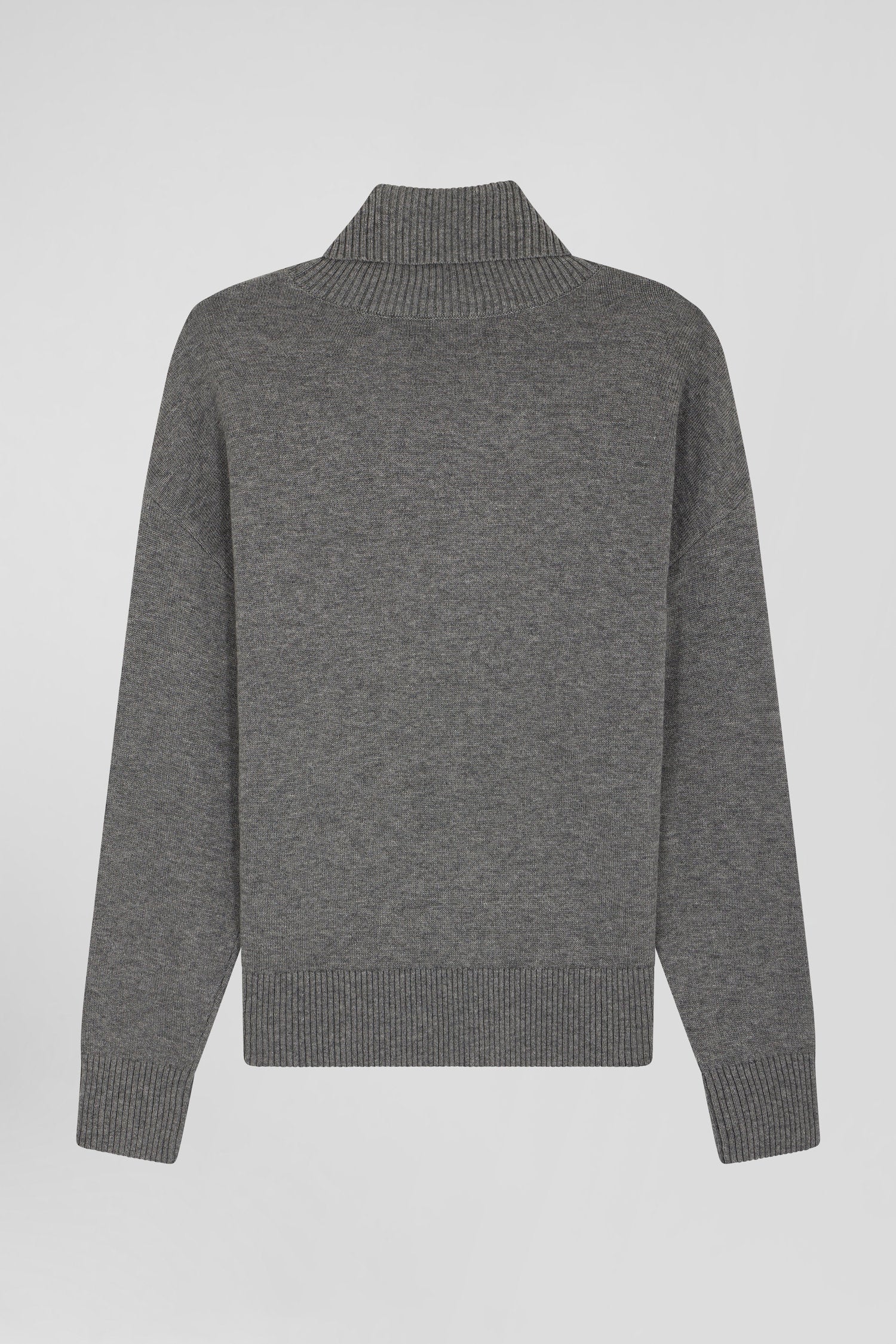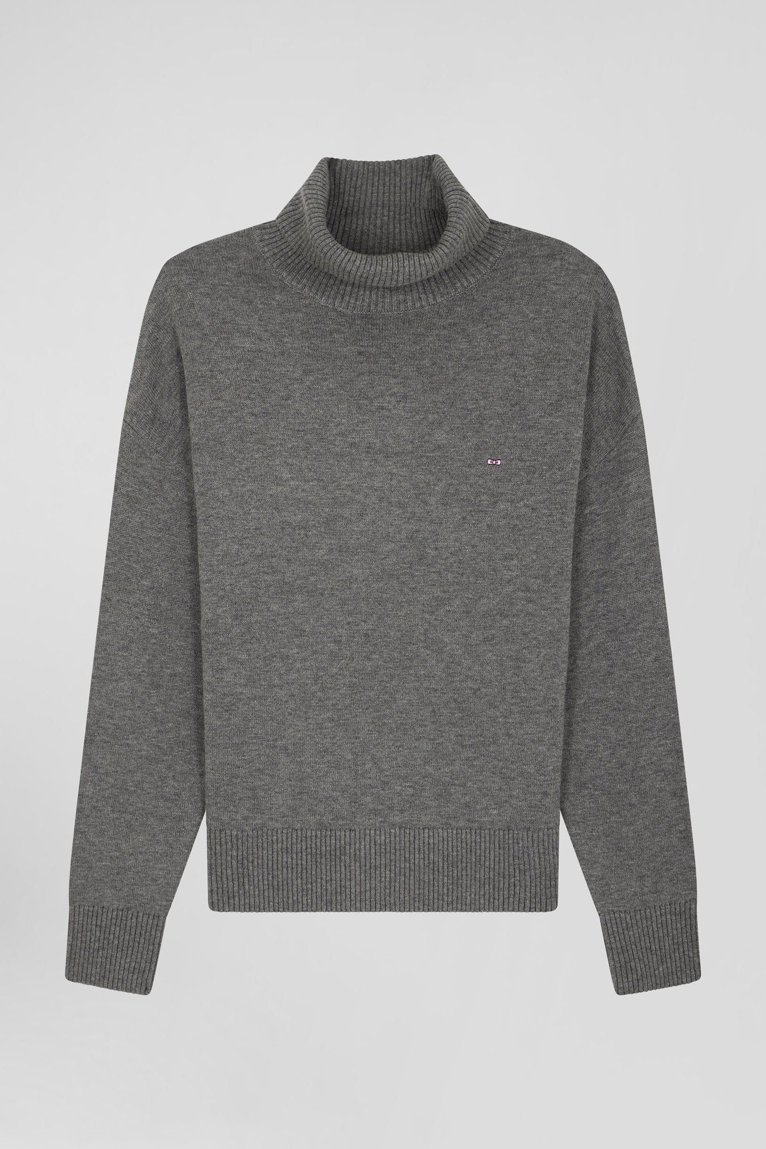 Pull col roulé en laine et coton gris anthracite coupe Relaxed
