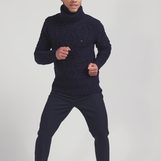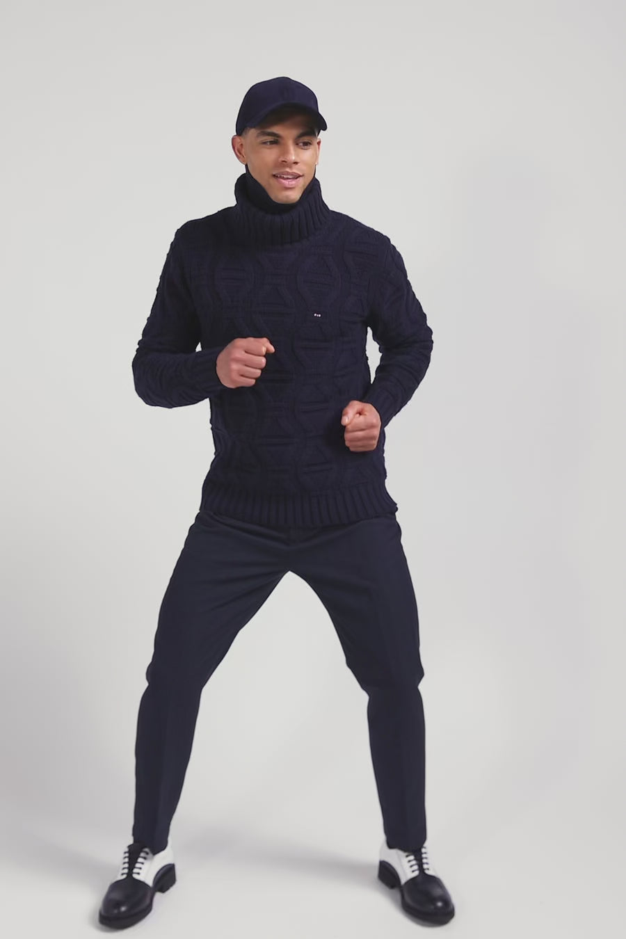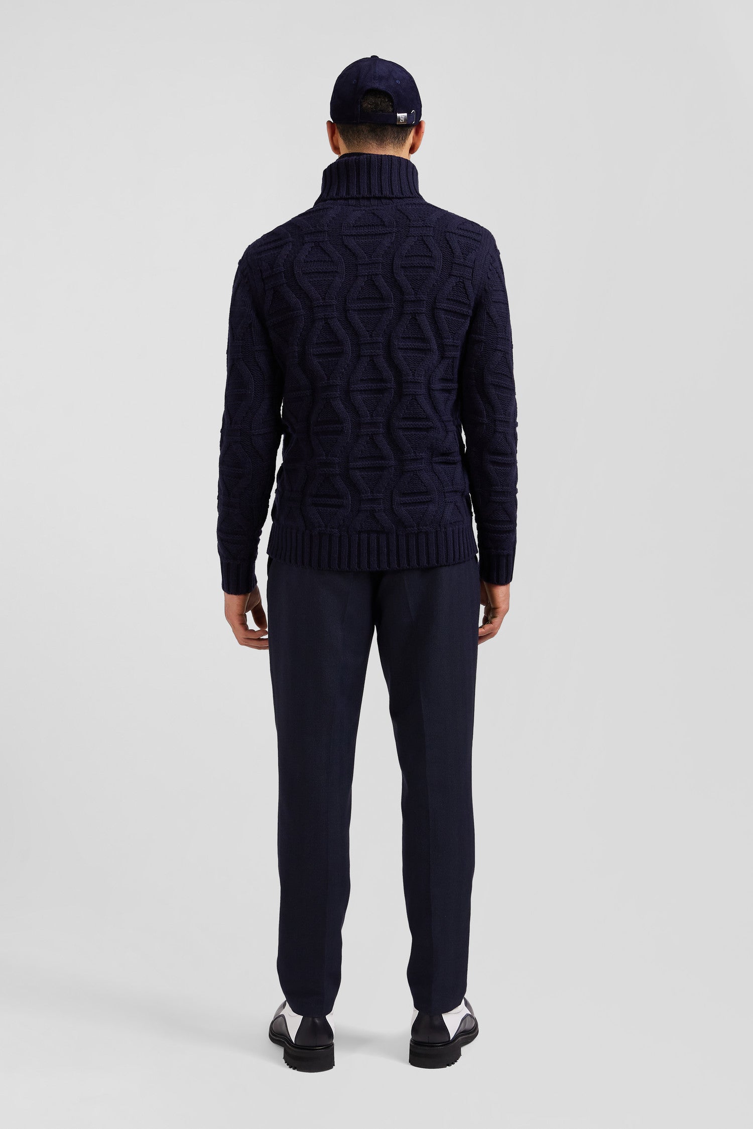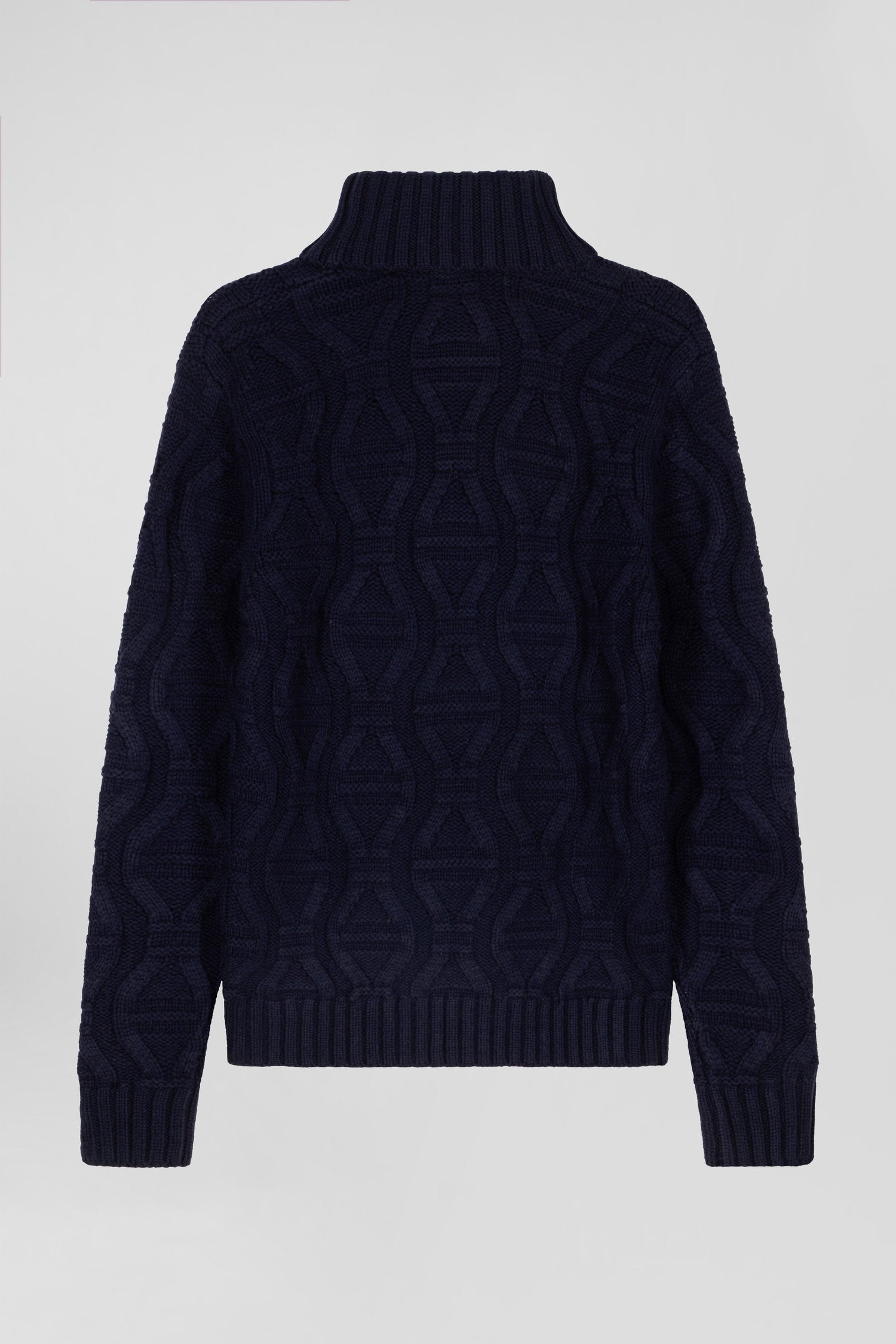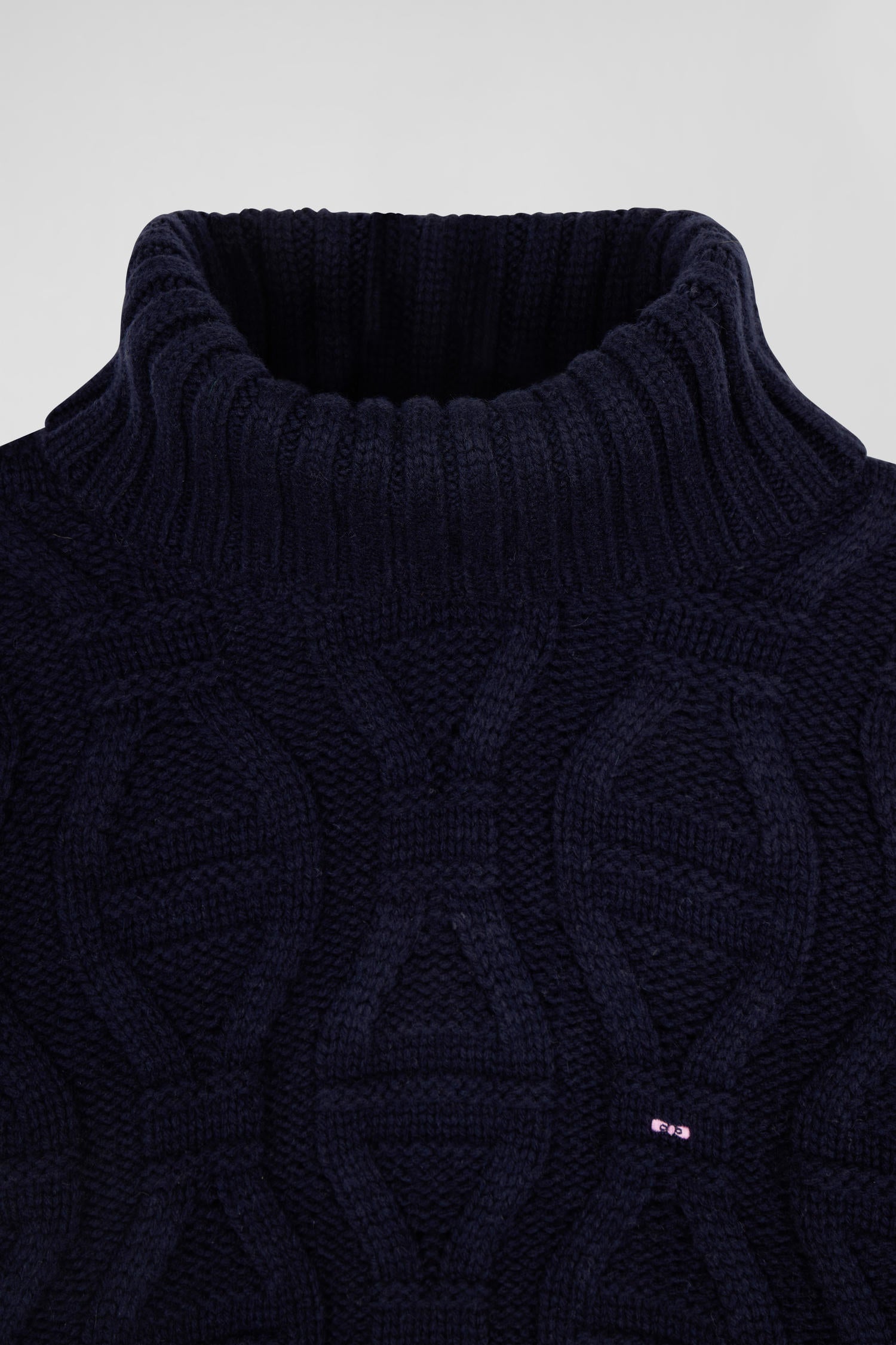 Pull col roulé en laine vierge et polyamide recyclé tricotage 3D marine coupe Regular