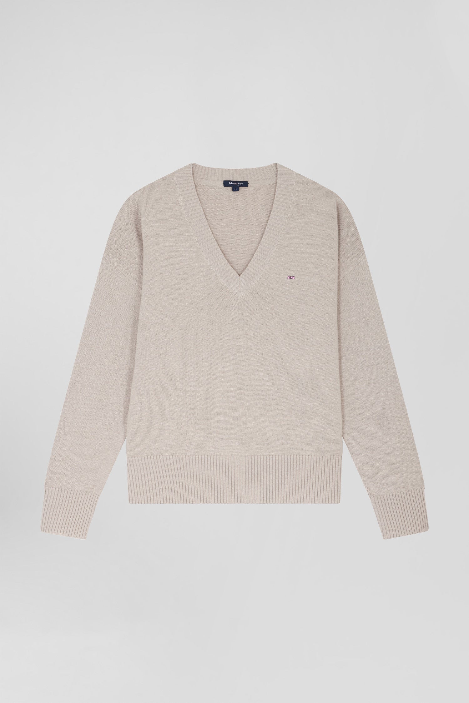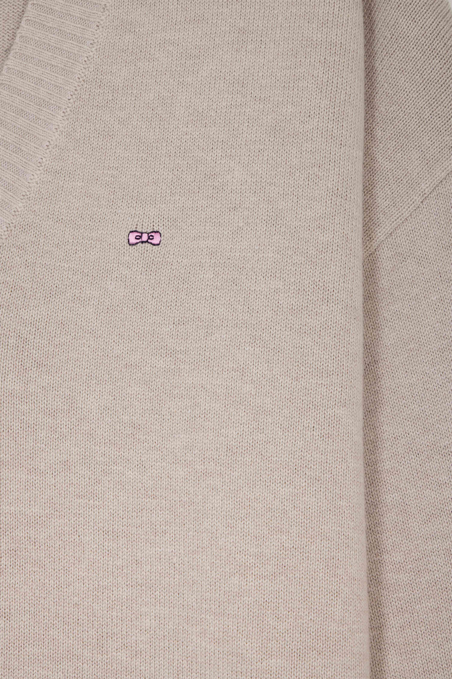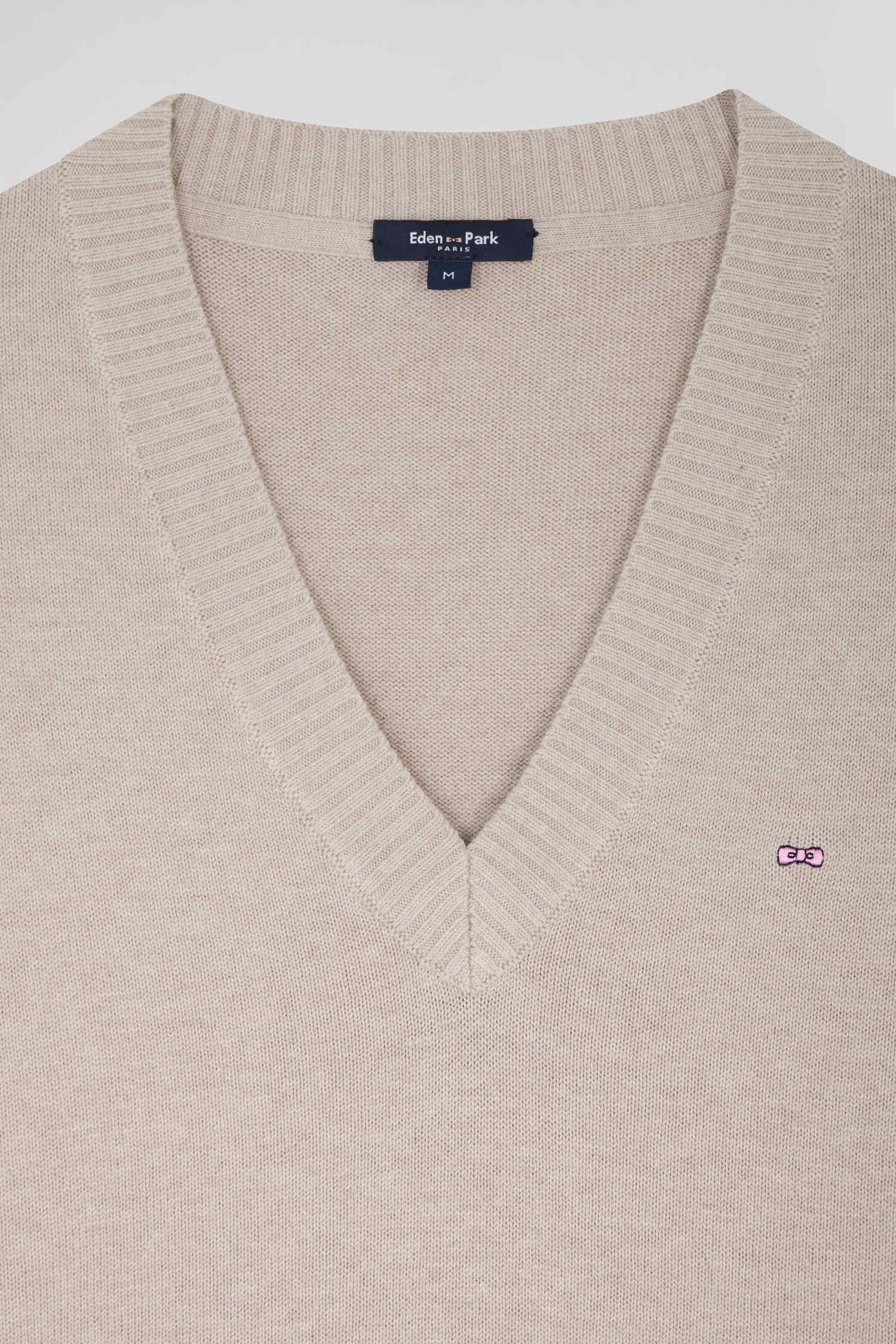 Pull col V en laine et coton beige coupe Relaxed