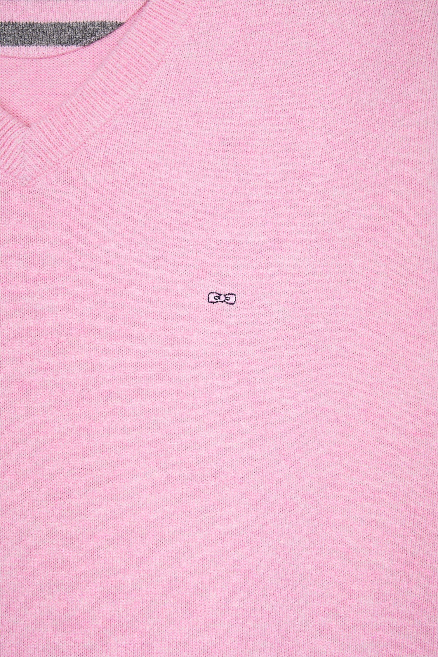 Pull col V en laine et coton rose