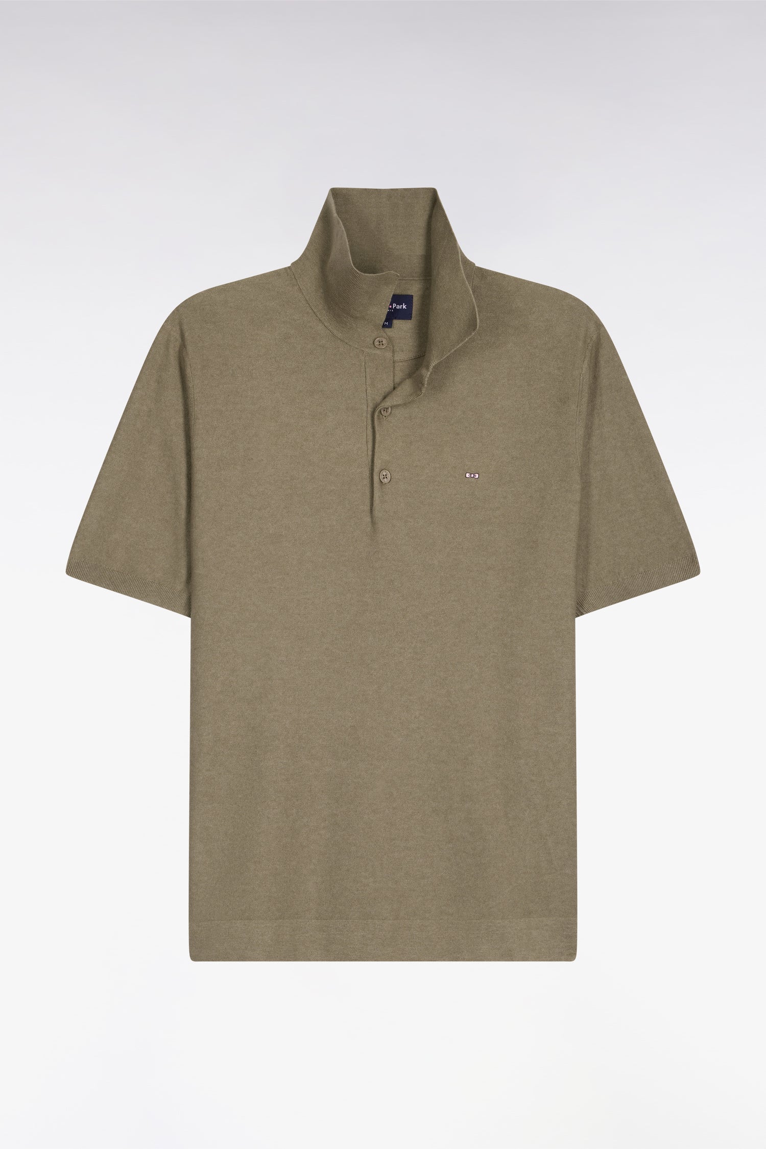 Pull manches courtes à col polo en coton et lyocell mélangés marron