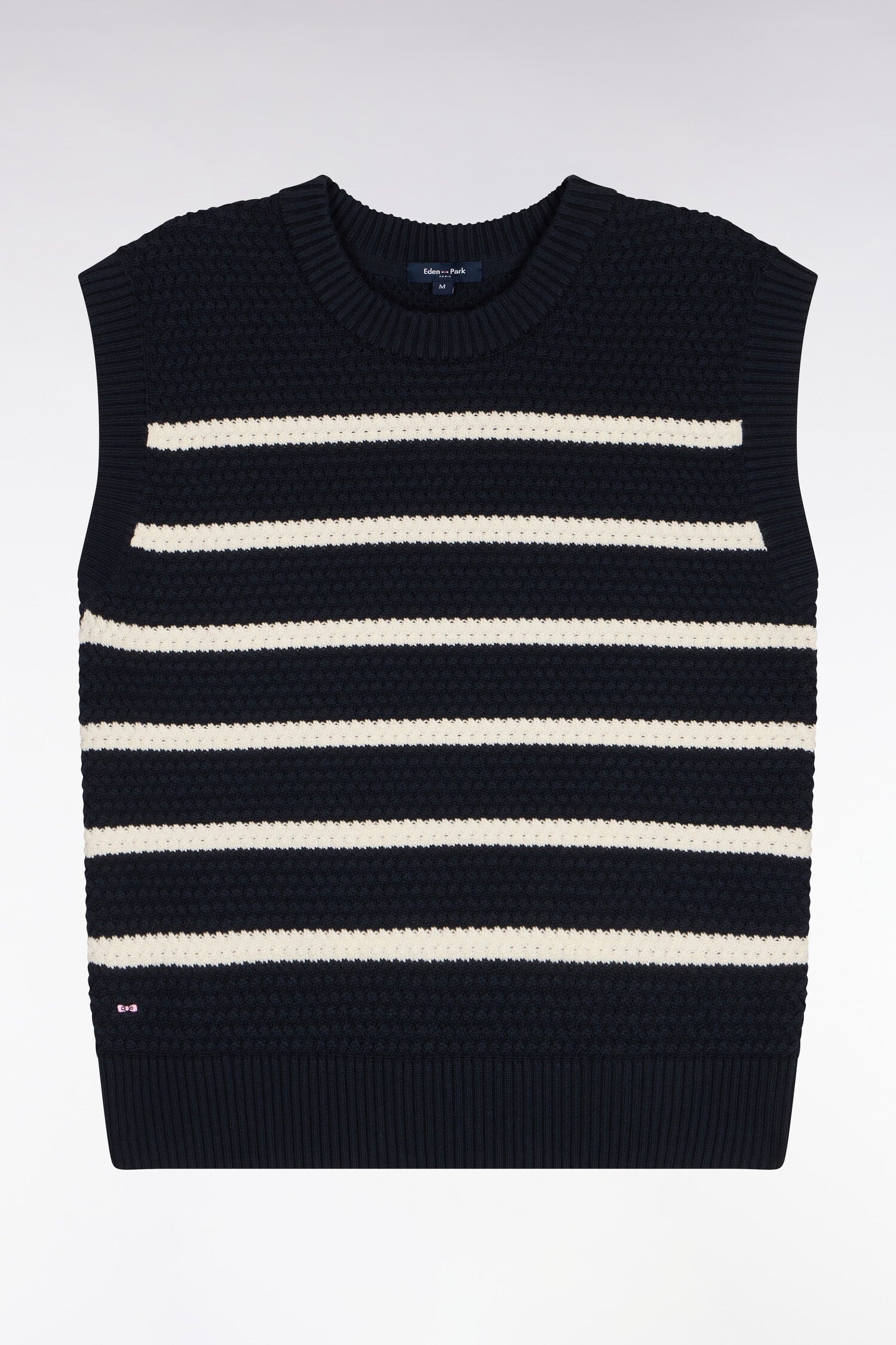 Pull marinière sans manche en coton tressé marine