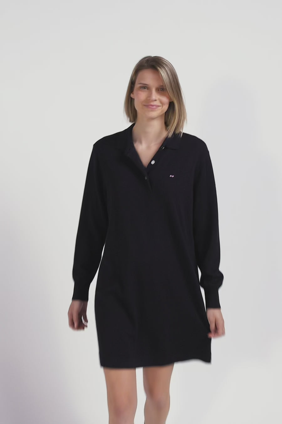 Adoptez une allure élégante avec notre robe col maillot en laine marine, simplement ornée de notre broderie nœud papillon rose sur la poitrine. Cette pièce chic et confortable à la fois offre une silhouette sophistiquée qui se marie parfaitement avec des bottes pour un look hivernal raffiné en soirée ou des baskets pour une touche plus décontractée tout au long de la journée. Idéale pour toutes occasions, cette robe versatile est un must-have pour votre vestiaire.