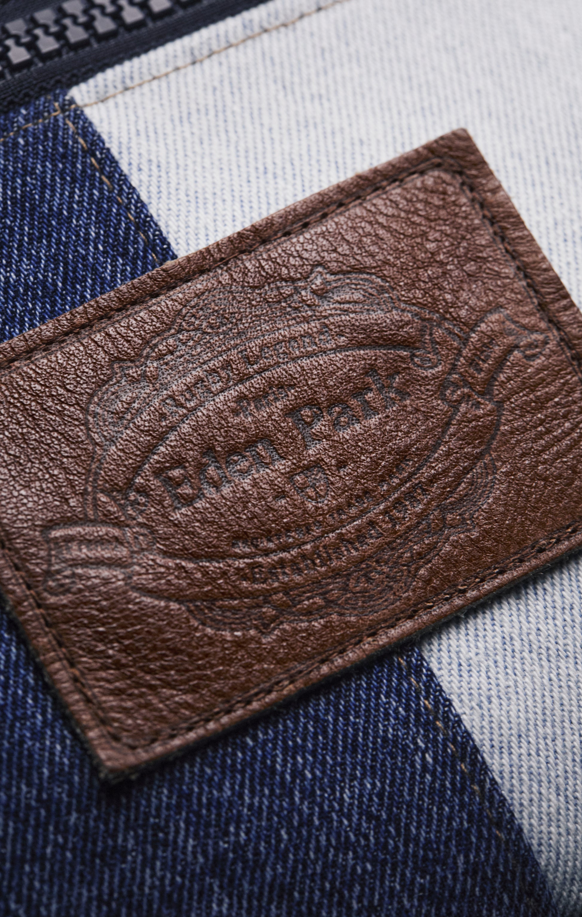 Imaginé et confectionné artisanalement dans le cadre de notre capsule Pap’Atelier, ce sac banane en denim bicolore a été réalisé à partir de chutes de nos jeans transformés en bob et sac cabas pour cette même collection exclusive et durable. Les zips proviennent de vêtements d'archives, auxquels notre atelier offre une nouvelle vie, tandis que les boucles métalliques neuves garantissent confort et solidité. Une poche intérieure zippée et une sangle réglable complètent son design fonctionnel pensé pour optimiser le quotidien. Avec son zip principal (longueur 27cm), son étiquette upcyclée en cuir stylisé et ses dimensions généreuses, cet accessoire conjugue praticité, originalité et engagement pour une mode plus durable. Dimensions : 40cm x 17cm