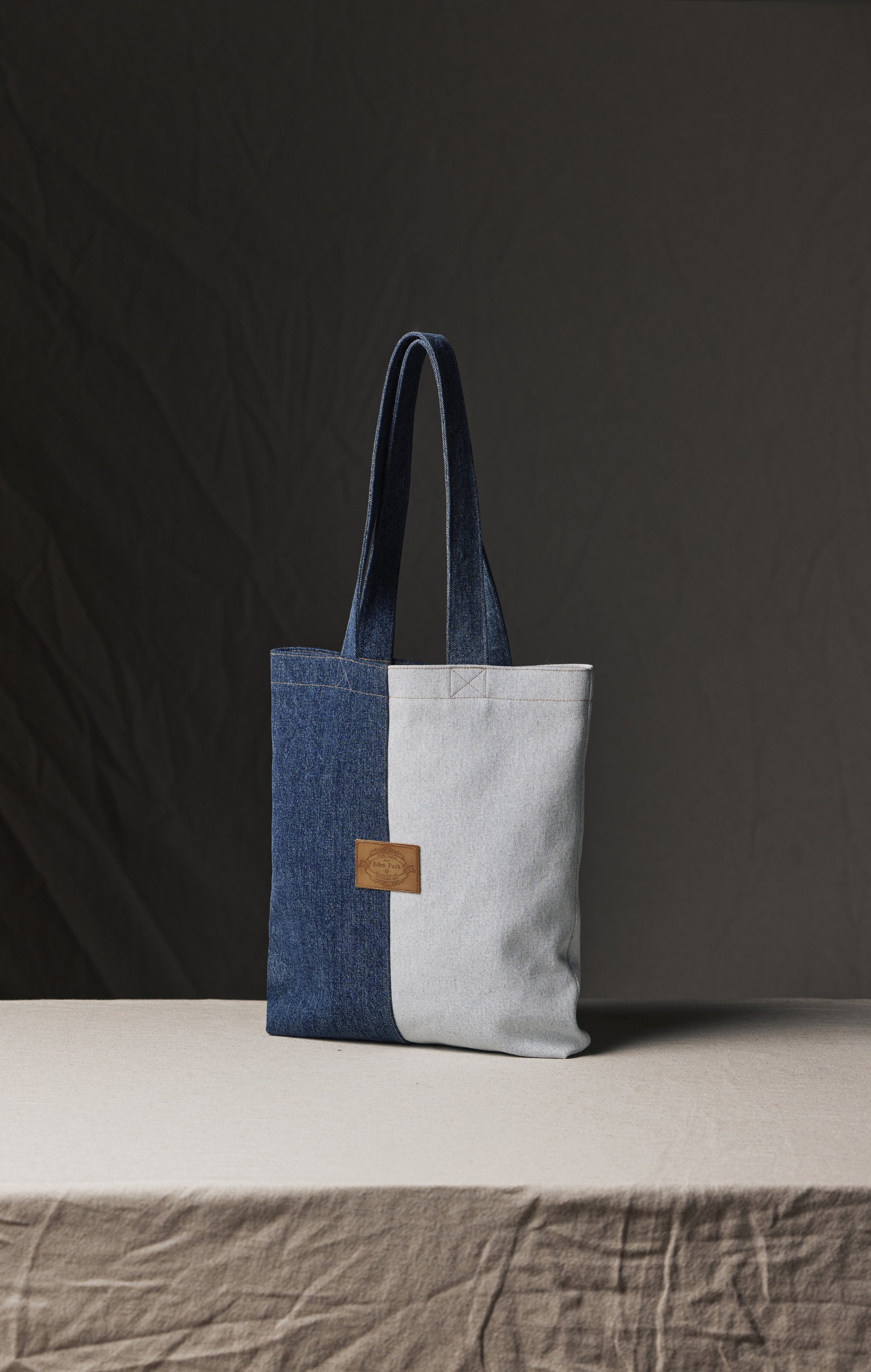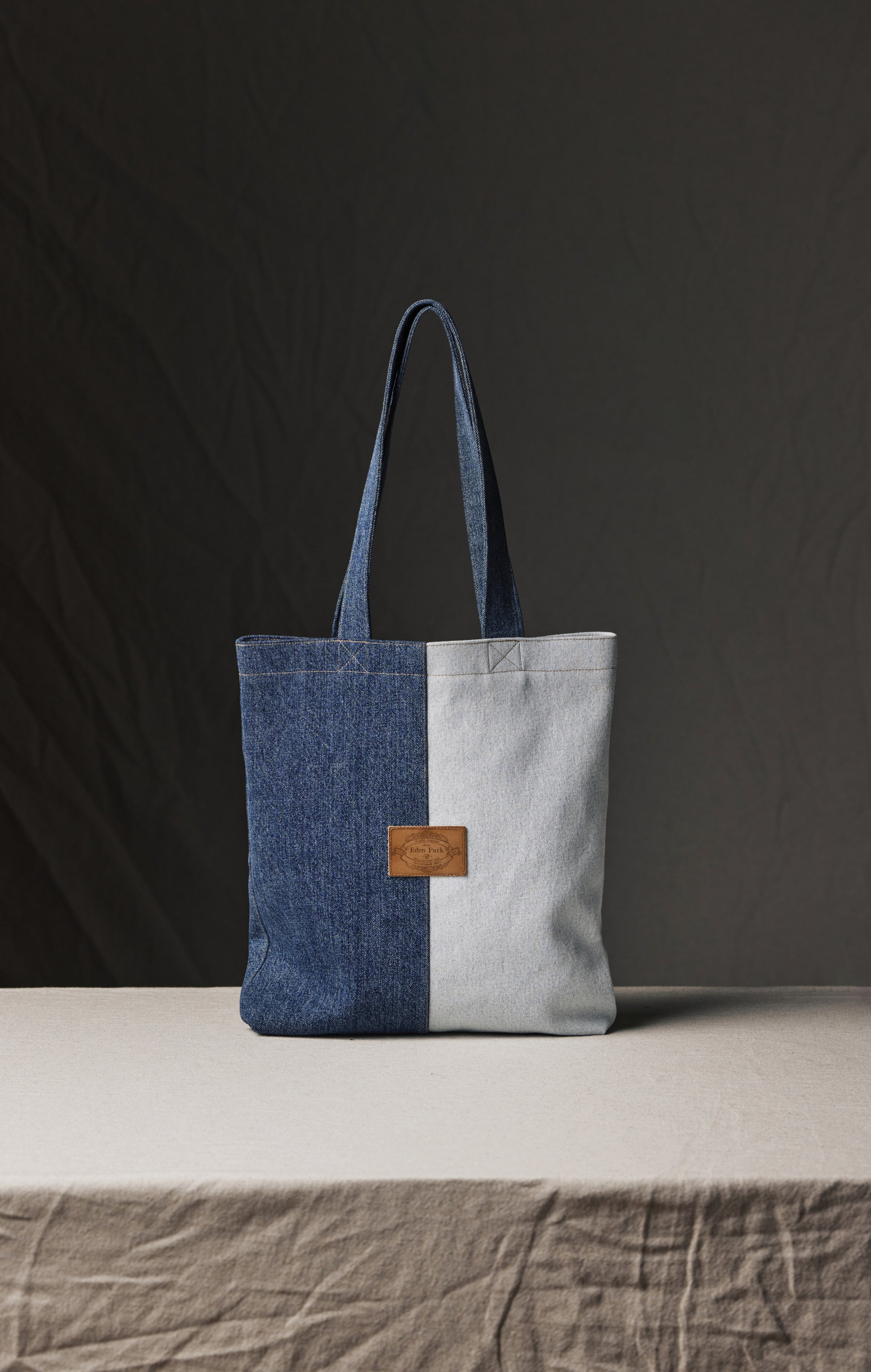Sac cabas en denim bicolore upcyclé Pap'Atelier