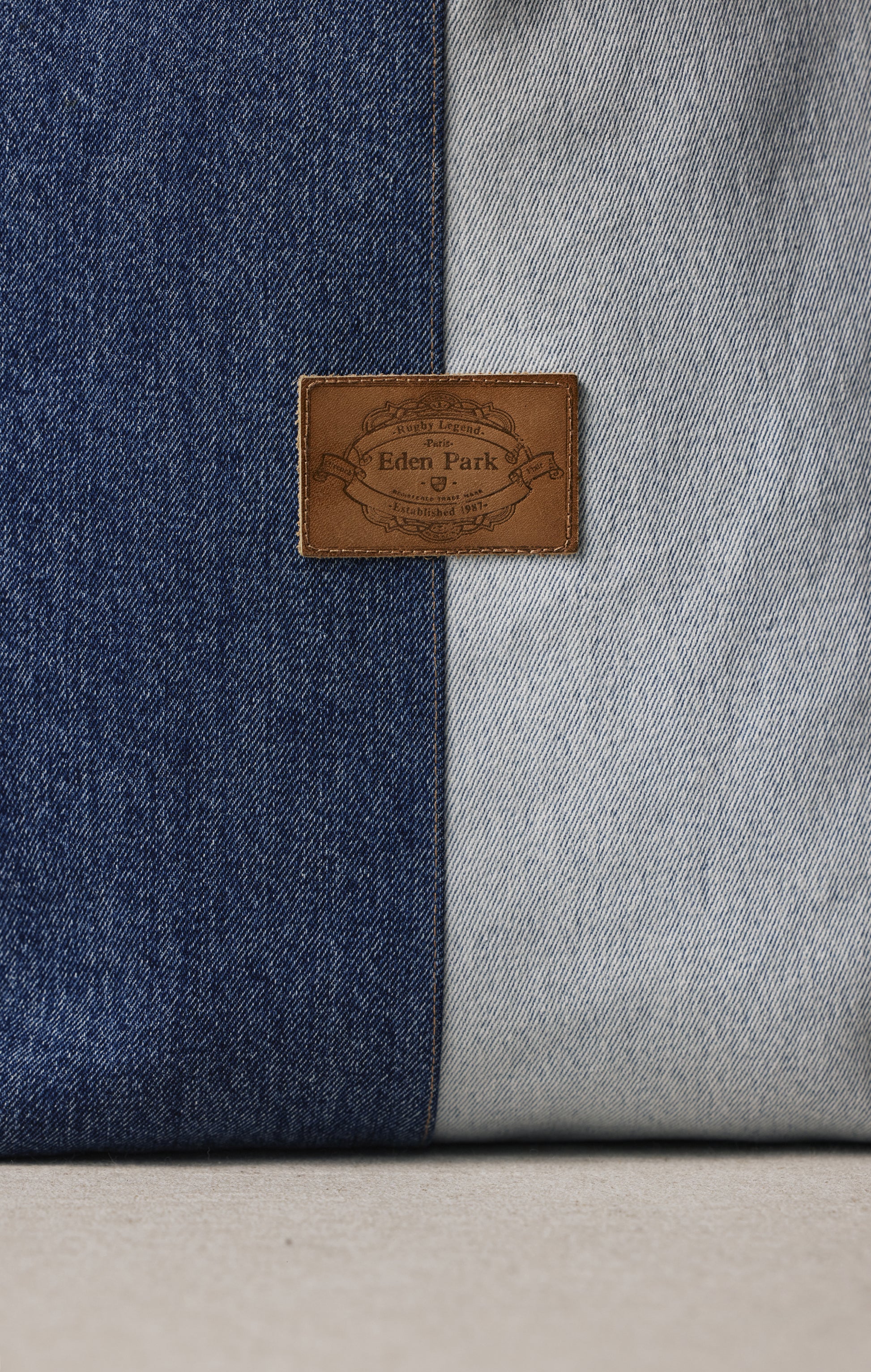 Ce tote bag bicolore a été conçu dans notre atelier à partir des mêmes jeans d'archives upcyclés pour créer le cabas et le bob de cette collection capsule Pap'Atelier. Denim clair et denim brut sont assemblés dans un contraste vertical, inspiré des maillots de rugby japonais des collections Eden Park et agrémentés d'un label en cuir prélevé sur un jean. Fidèle à notre volonté de valoriser chaque ressource, ce sac graphique présente une silhouette épurée et une construction robuste. Fidèle allié du quotidien, ce cabas aussi pratique qu’élégant dispose d'une poche intérieure zippée, valorisant le recyclage et d'une doublure en toile issue elle aussi de nos archives. Ce tote bag reflète une mode créative et engagée, pensée pour donner une seconde vie aux matières existantes. Proposé en un seul exemplaire sur notre site pour une durée limitée, ce modèle célèbre la rareté et l’artisanat de notre maison de mode. Dimensions : 37 cm x 40cm
