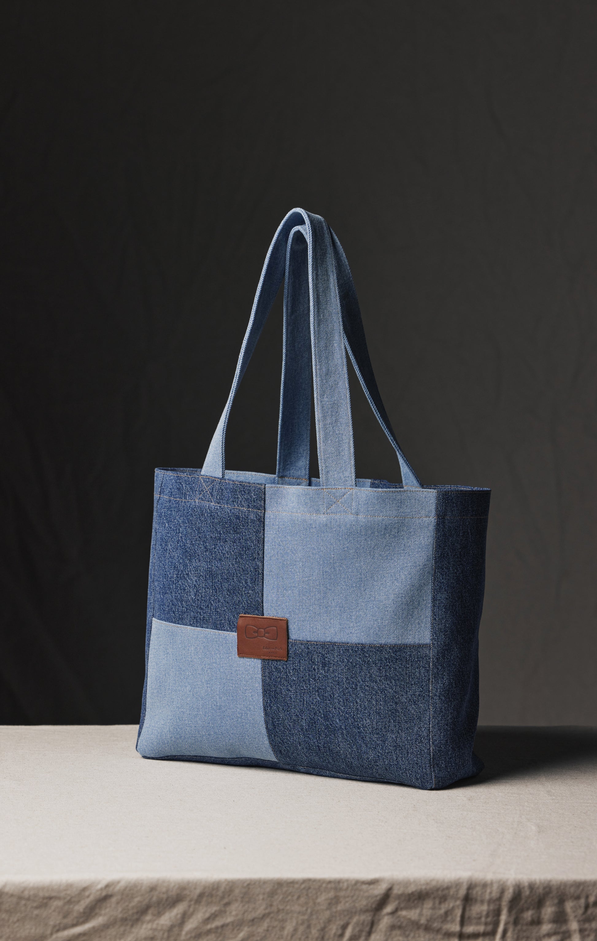 Sac cabas en patchwork denim upcyclé Pap'Atelier