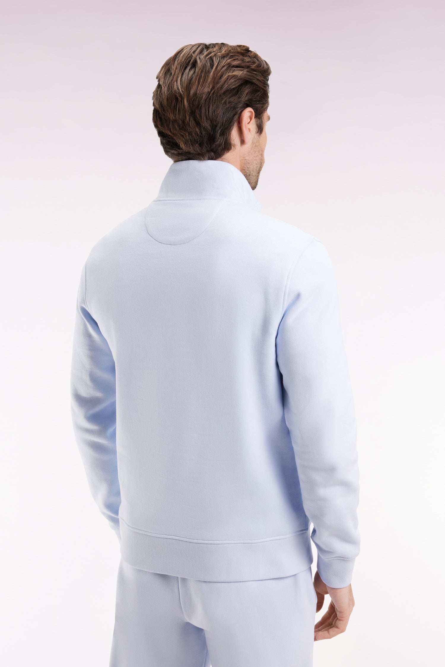 Ce sweatshirt à col montant zippé réalisé en molleton gratté s’impose comme un essentiel du vestiaire décontracté. Son intérieur de col, ses poignets et son bas de corps en bords-côtes assurent un maintien confortable. Décliné dans une large palette de coloris, ce sweatshirt pour homme se porte aussi bien avec un jogging coordonné qu’un jean