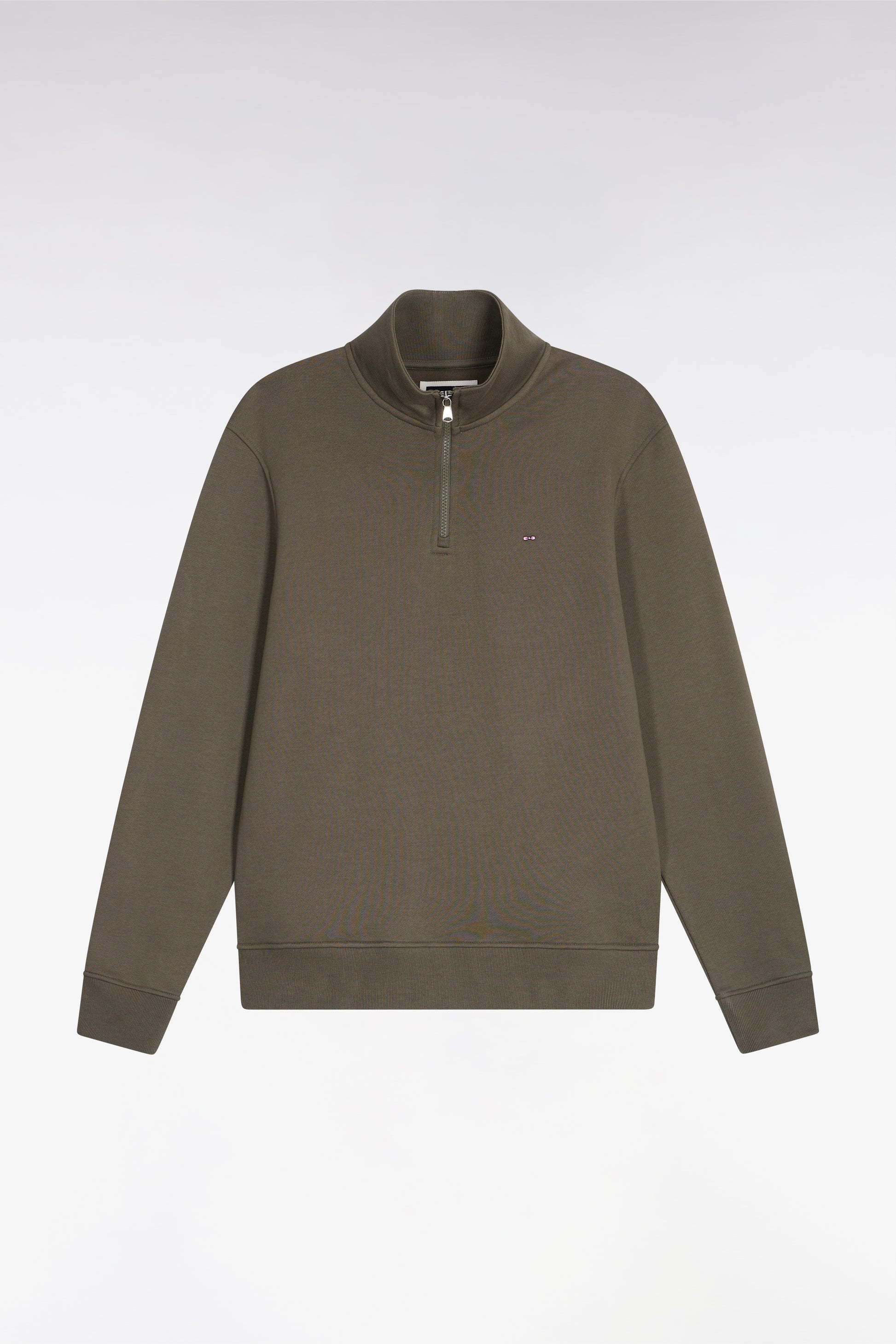 Ce sweatshirt à col montant zippé réalisé en molleton gratté s’impose comme un essentiel du vestiaire décontracté. Son intérieur de col, ses poignets et son bas de corps en bords-côtes assurent un maintien confortable. Décliné dans une large palette de coloris, ce sweatshirt pour homme se porte aussi bien avec un jogging coordonné qu’un jean