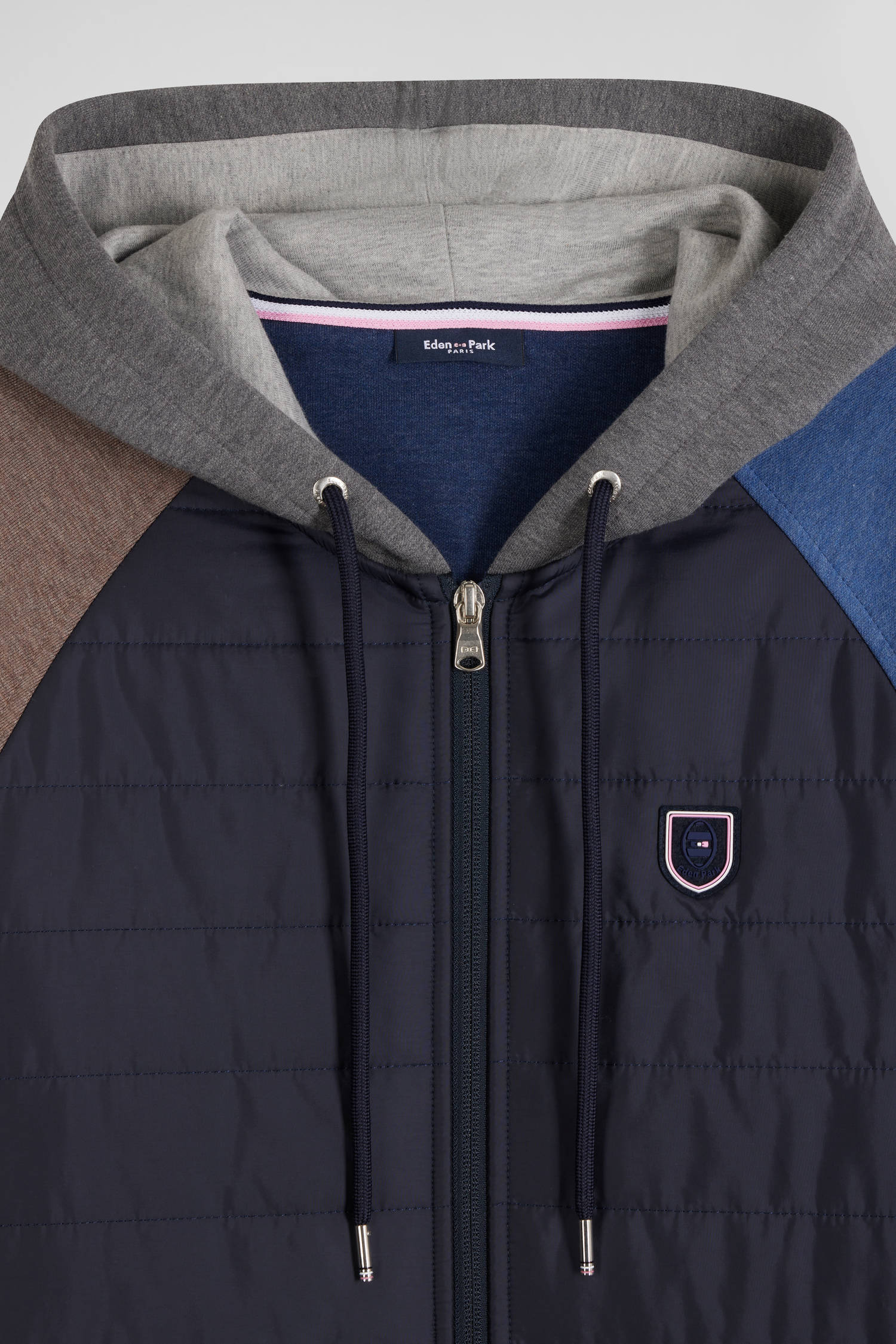 Avec sa capuche en molleton intégrée et sa parmenture matelassée, ce sweatshirt en coton mélangé est un essentiel de la mi-saison. Ce modèle tricolore, décliné dans deux versions tendance, est également doté de bords-côtes pour un tombé sans faute.
