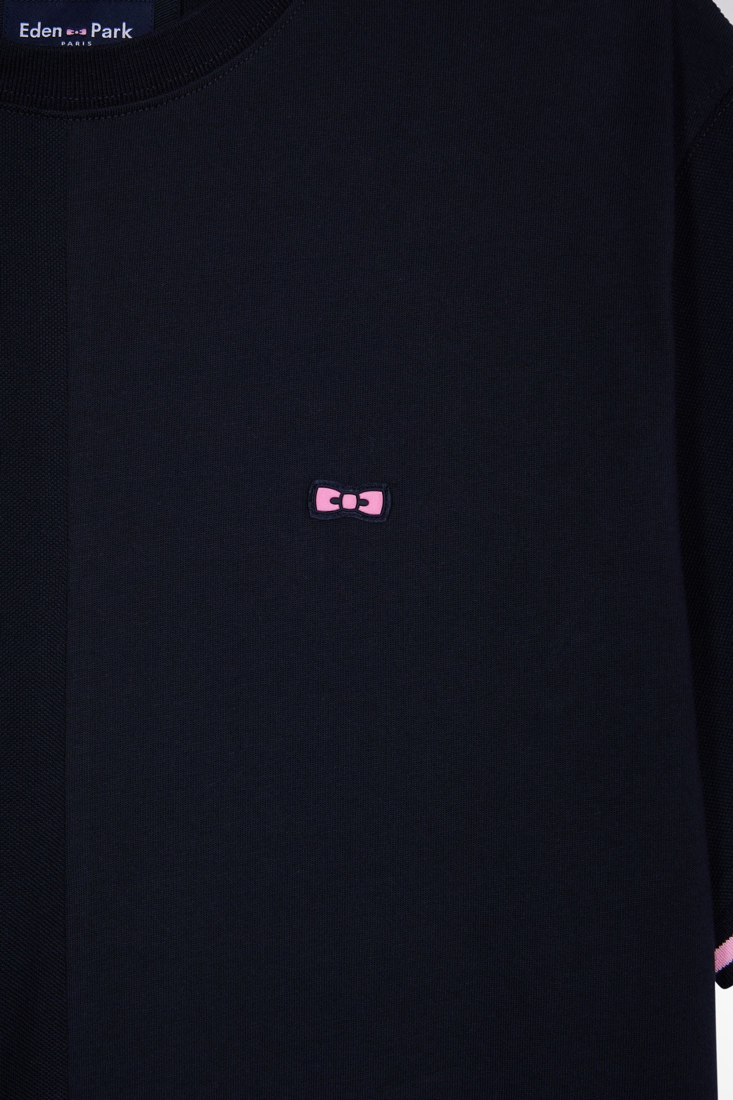 Avec ses finitions signature inspirée de notre ADN rugby : logo Eden Park dans le dos, bords-côtes rayés en bordure de manche et emblème nœud papillon en gomme sur la poitrine, ce T-shirt homme marine ne fait aucune impasse sur le style. Un modèle en jersey de coton pur réalisé dans une coupe légèrement ample pour plus de confort