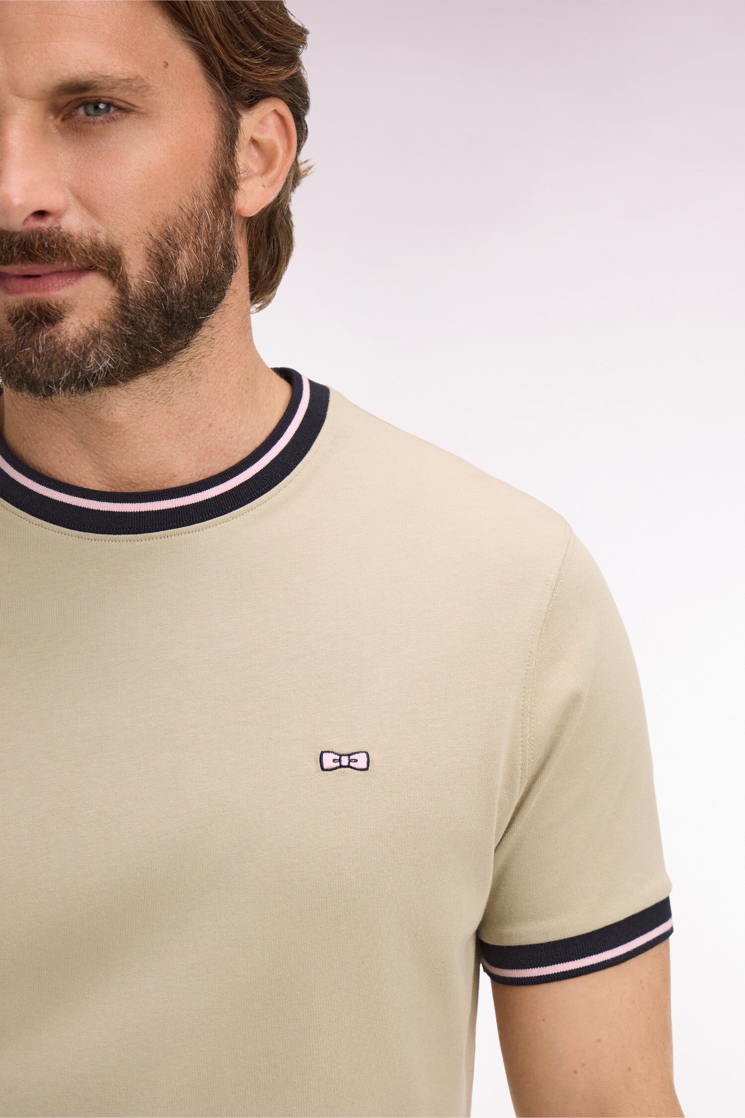 Ce T-shirt manches courtes pour homme adopte une esthétique sobre relevée par un motif emblématique : sa broderie dos Eden Park rehaussée par un luxueux tissu cravate imprimé. Sa coupe confortable et sa matière douce en font un T-shirt agréable à porter, parfait pour accompagner les silhouettes décontractées avec élégance. En beige ou en kaki, ce T-shirt brodé conserve ses bords-côtes contrastés animé d'un liseré pour une touche graphique et un tomber impeccable.