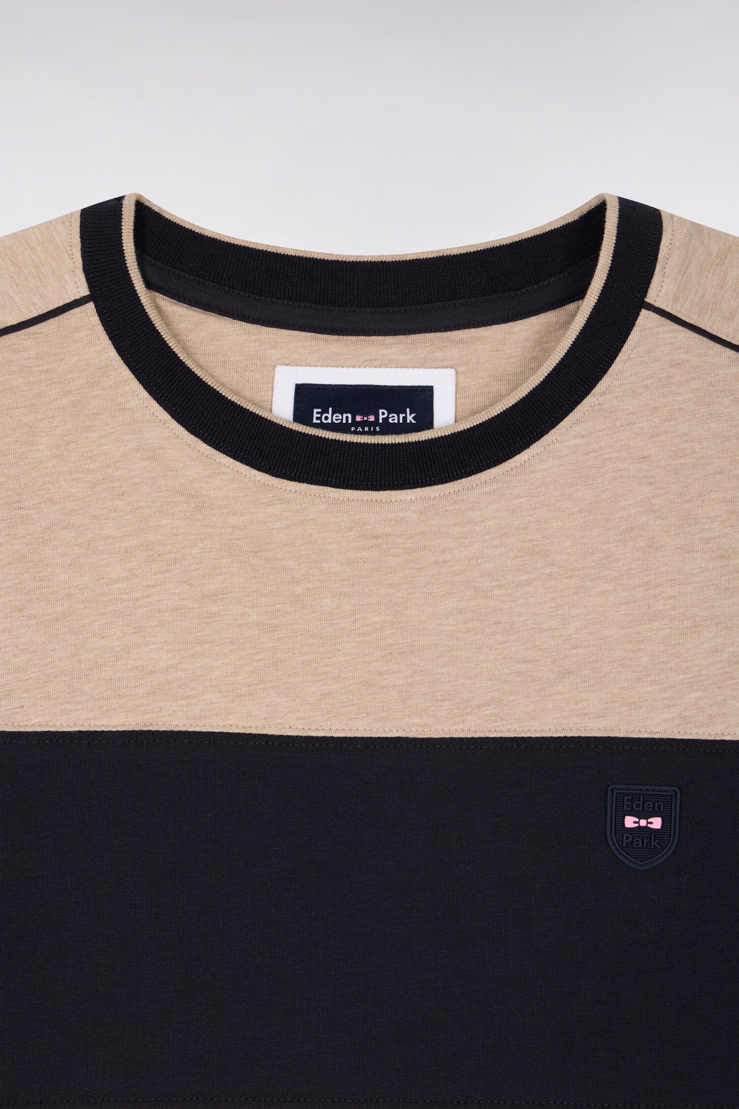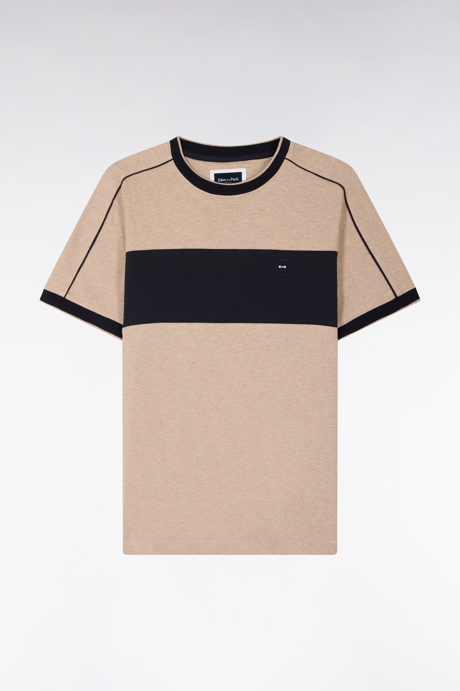 Notre T-shirt à manches courtes bicolore présente un écusson nœud papillon, un détail qui s'ajoute à ses découpes et passepoils choisis dans nos codes couleurs emblématiques. Avec sa silhouette athlétique retravaillée et sa coupe légèrement ajustée, ce T-shirt en coton stretch présente des bords-côtes assurant votre confort et sa tenue, saison après saison.