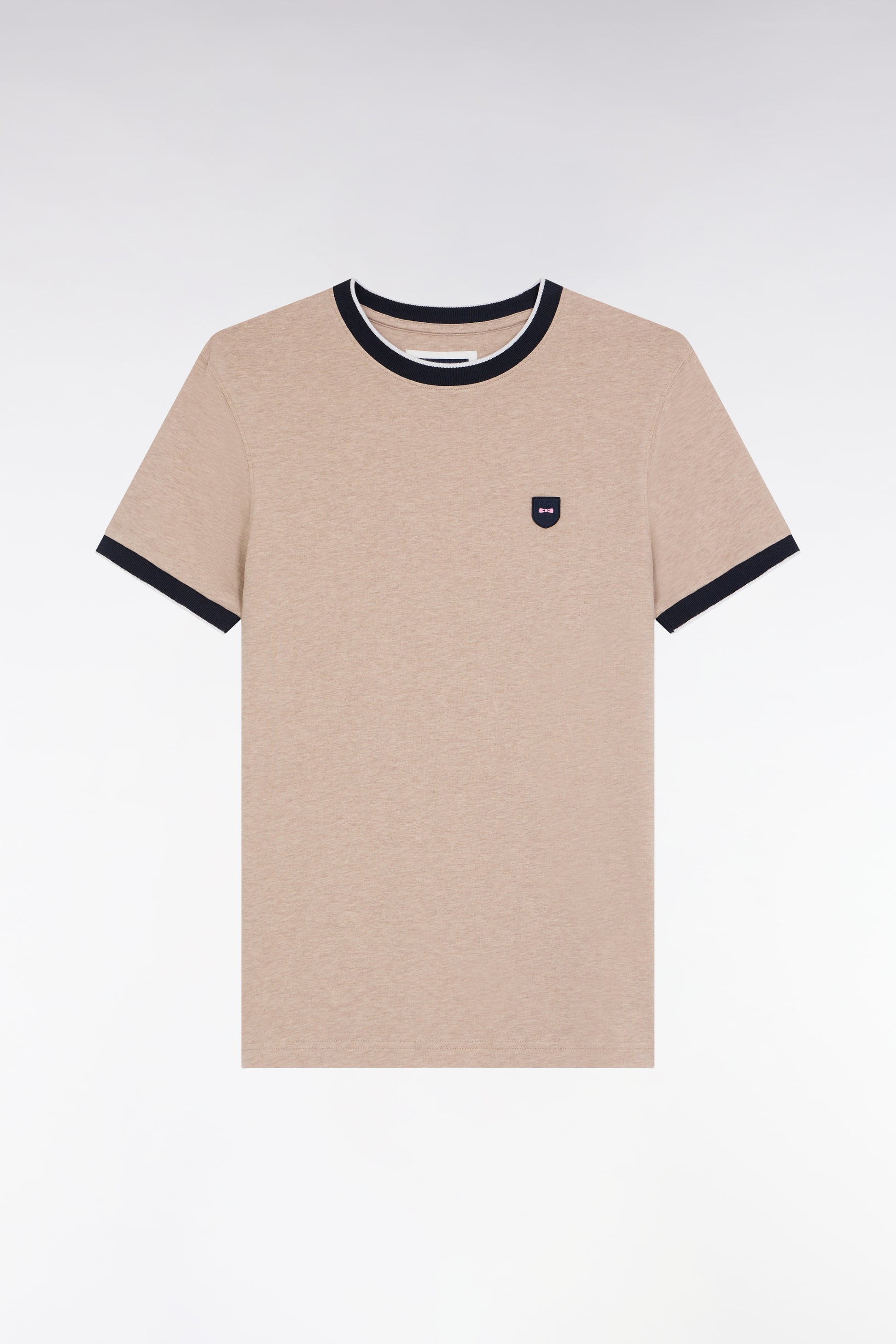 T-shirt à manches courtes en coton stretch camel coupe ajustée
