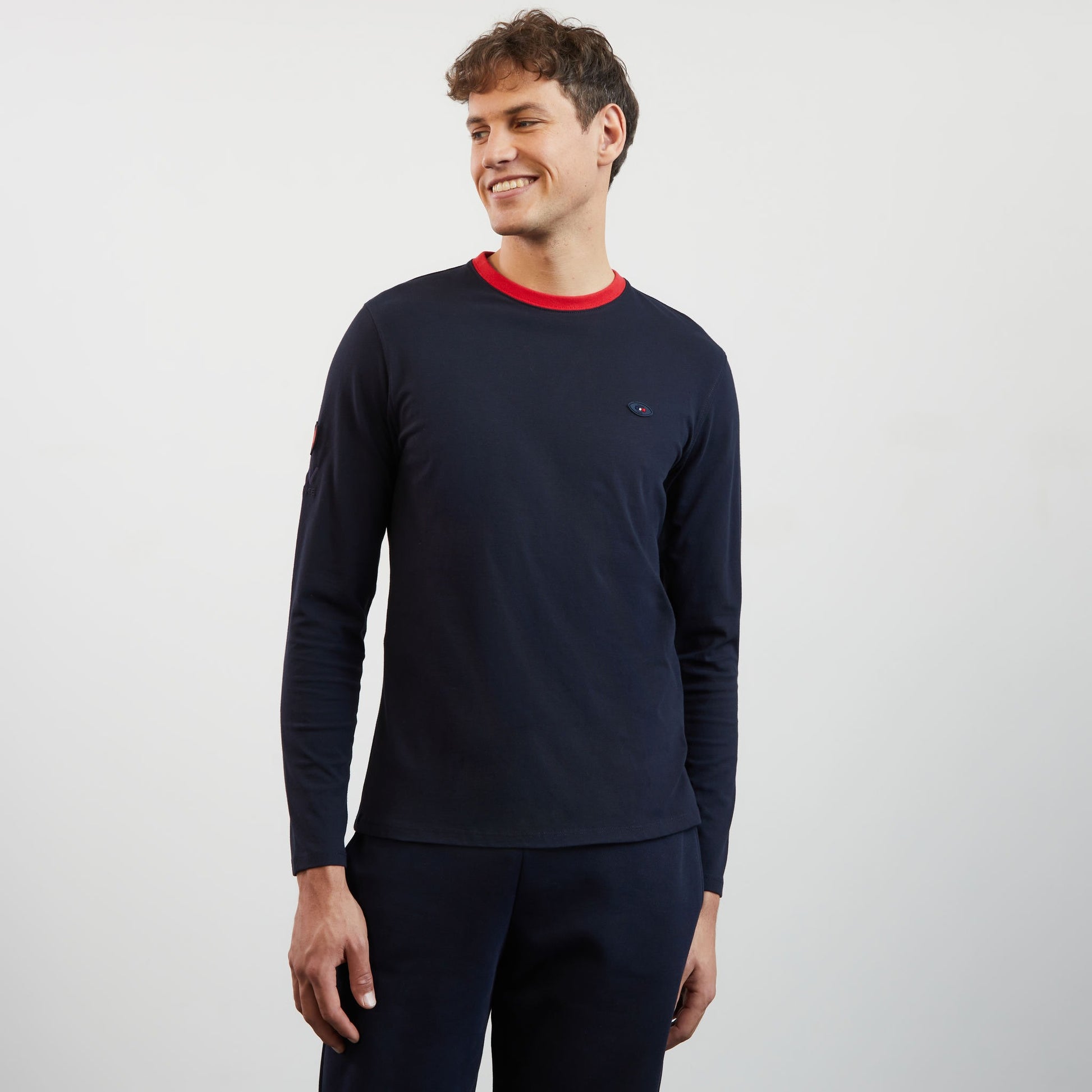 T-shirt bleu marine manches longues détails broderies n°10 et XV de France