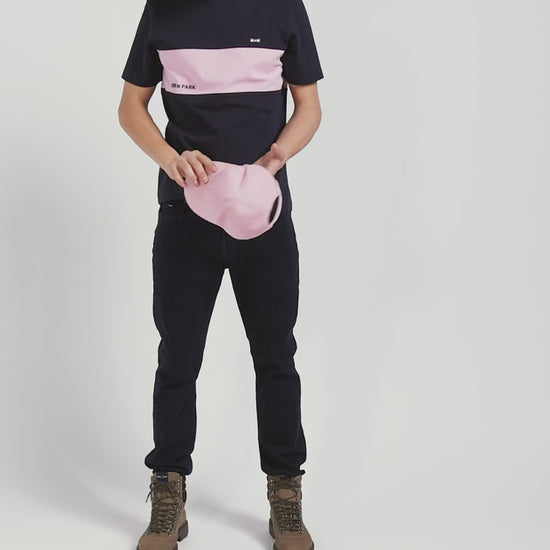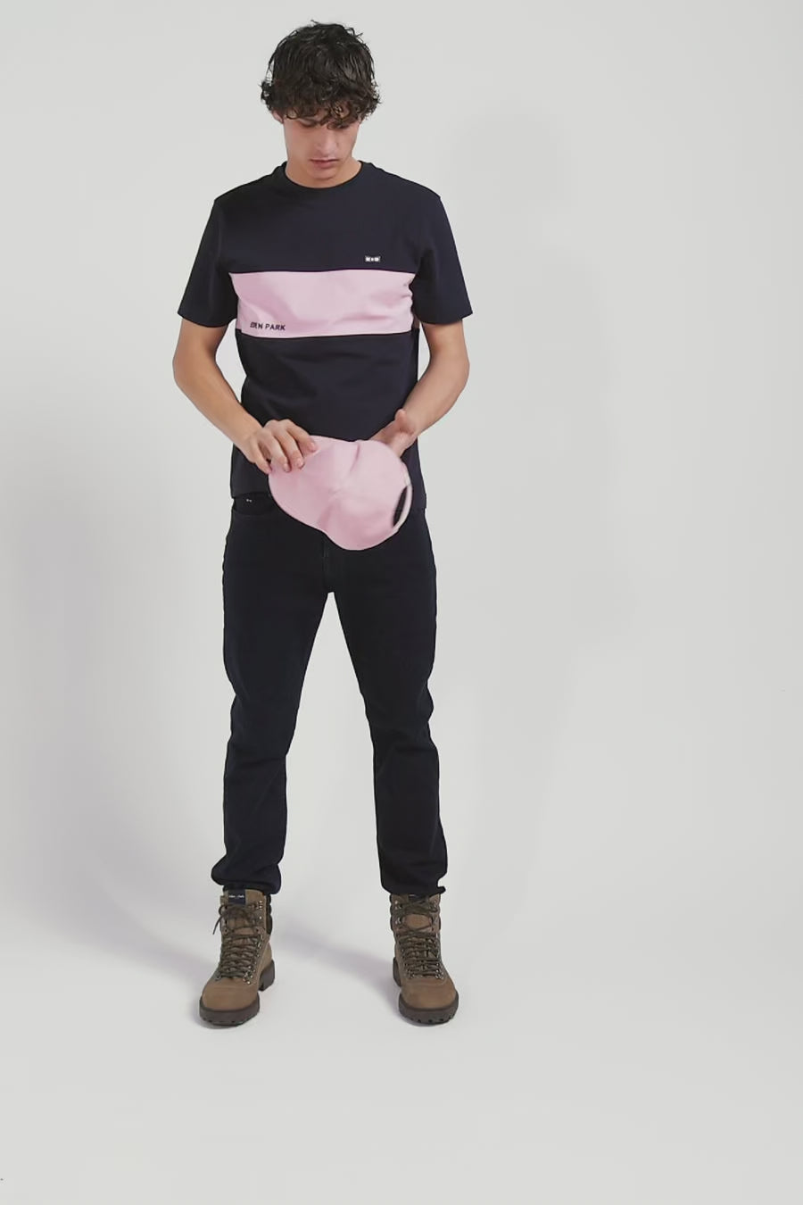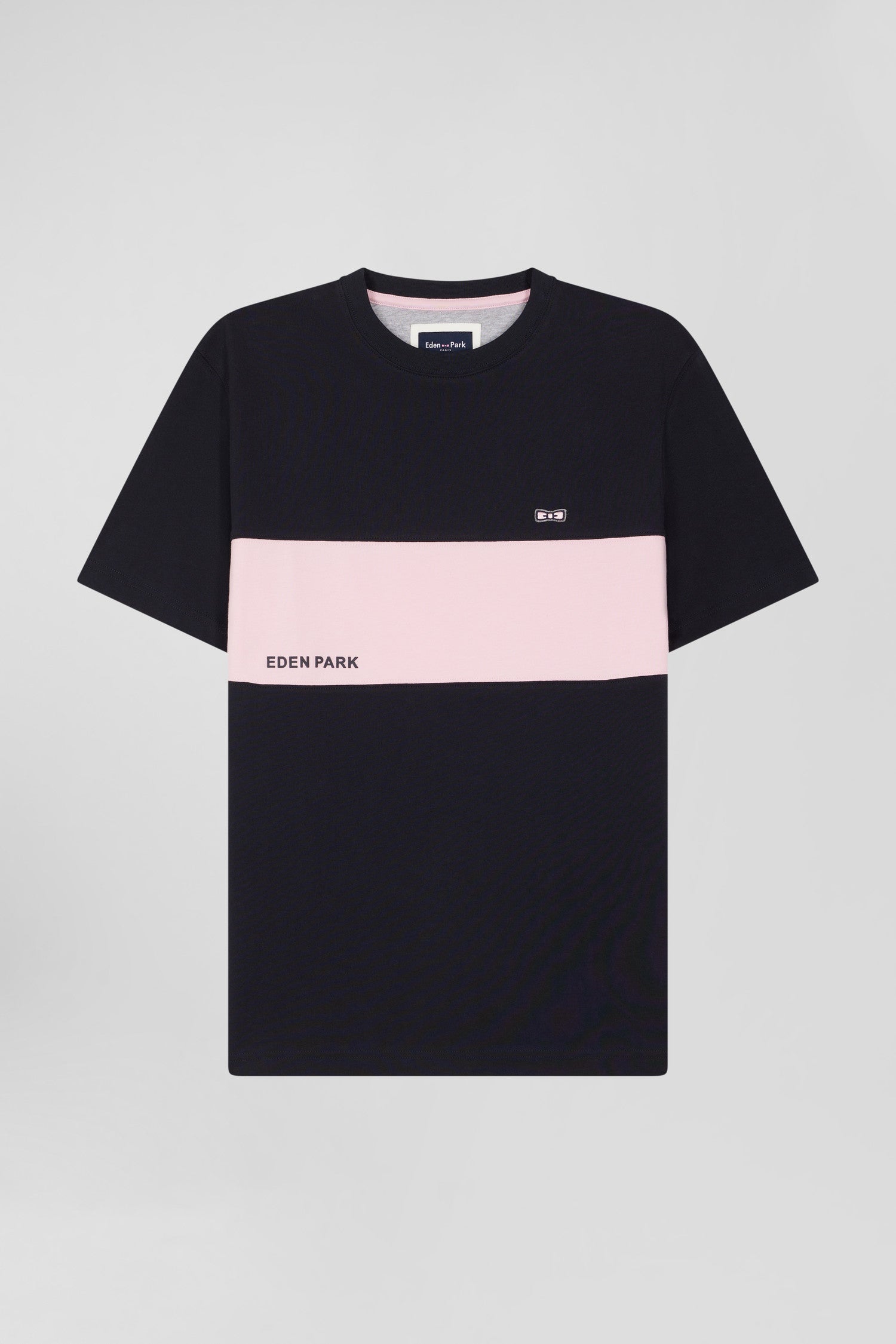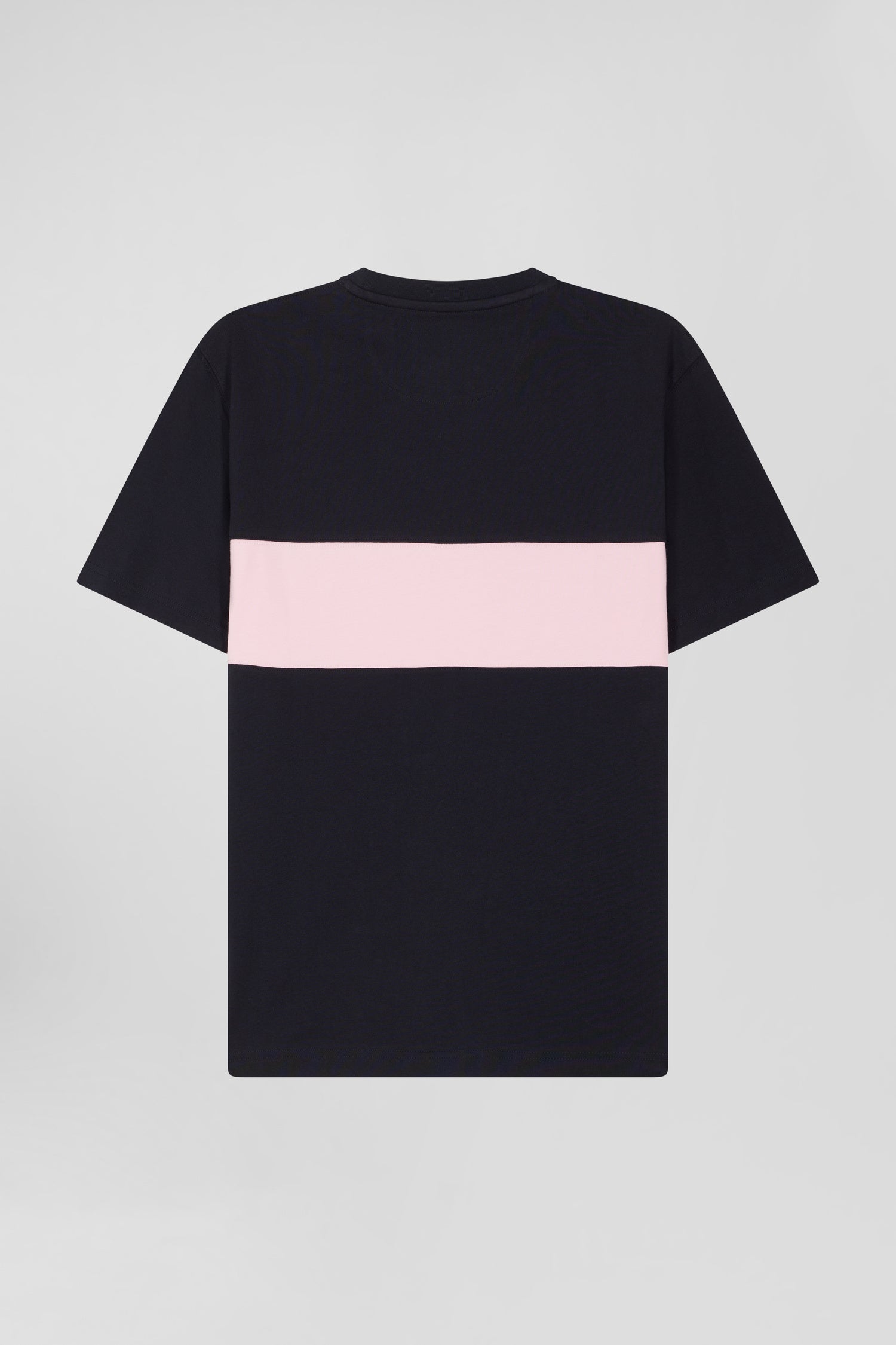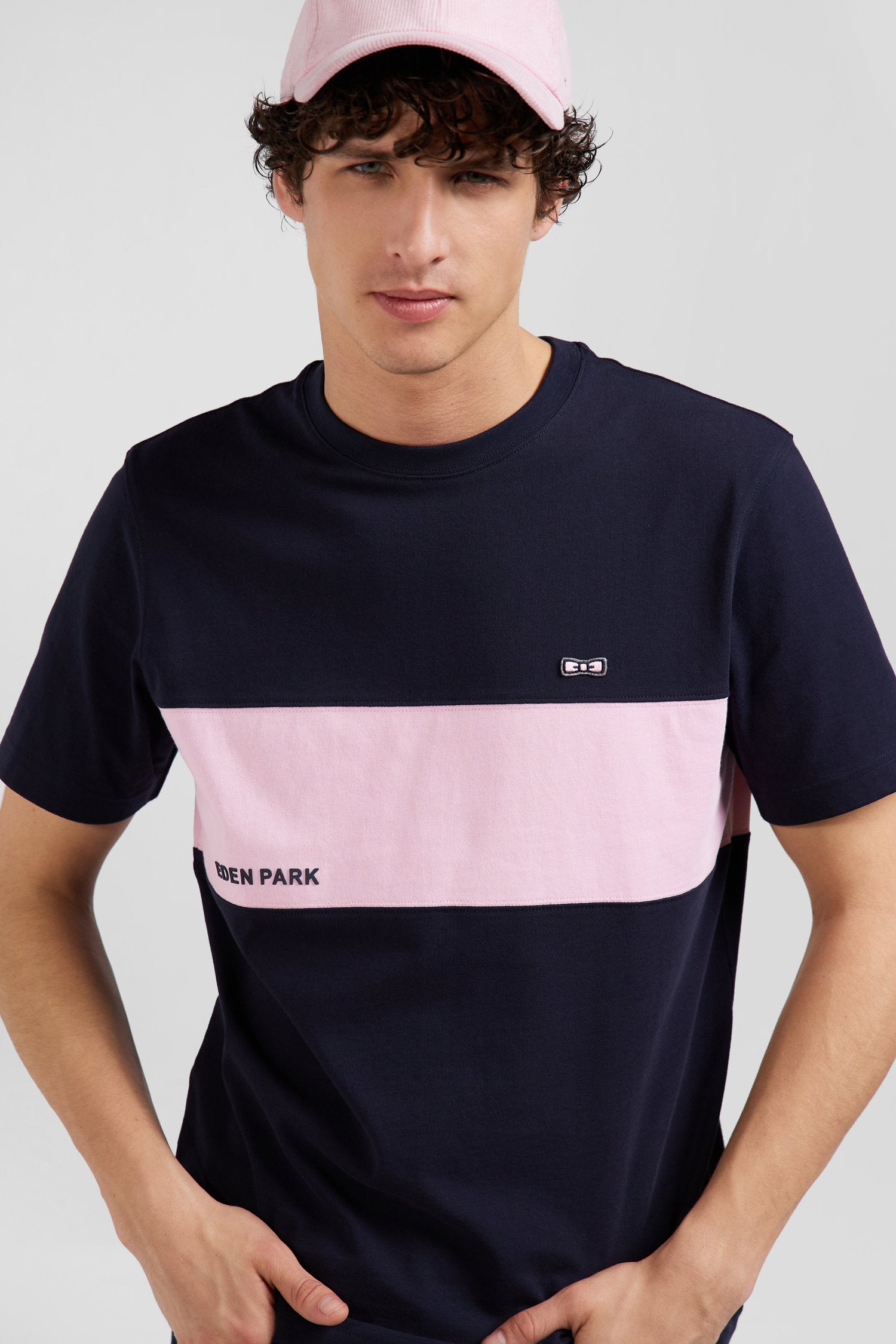 T-shirt manches courtes bicolore en coton bleu marine et rose coupe Regular