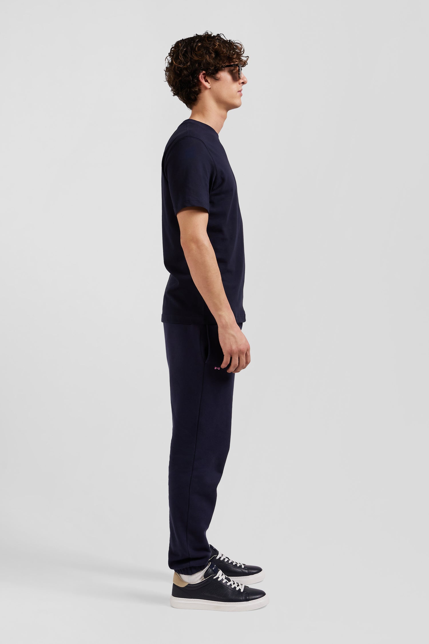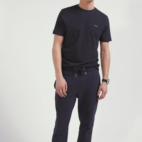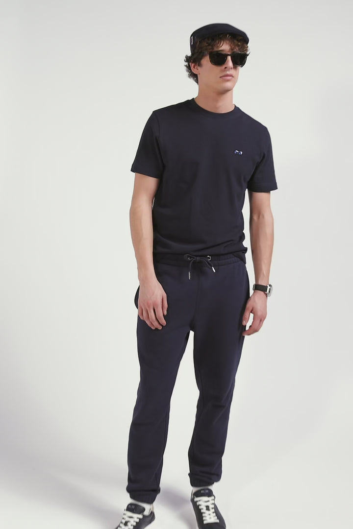 T-shirt manches courtes en coton bleu marine broderie dos coupe Regular