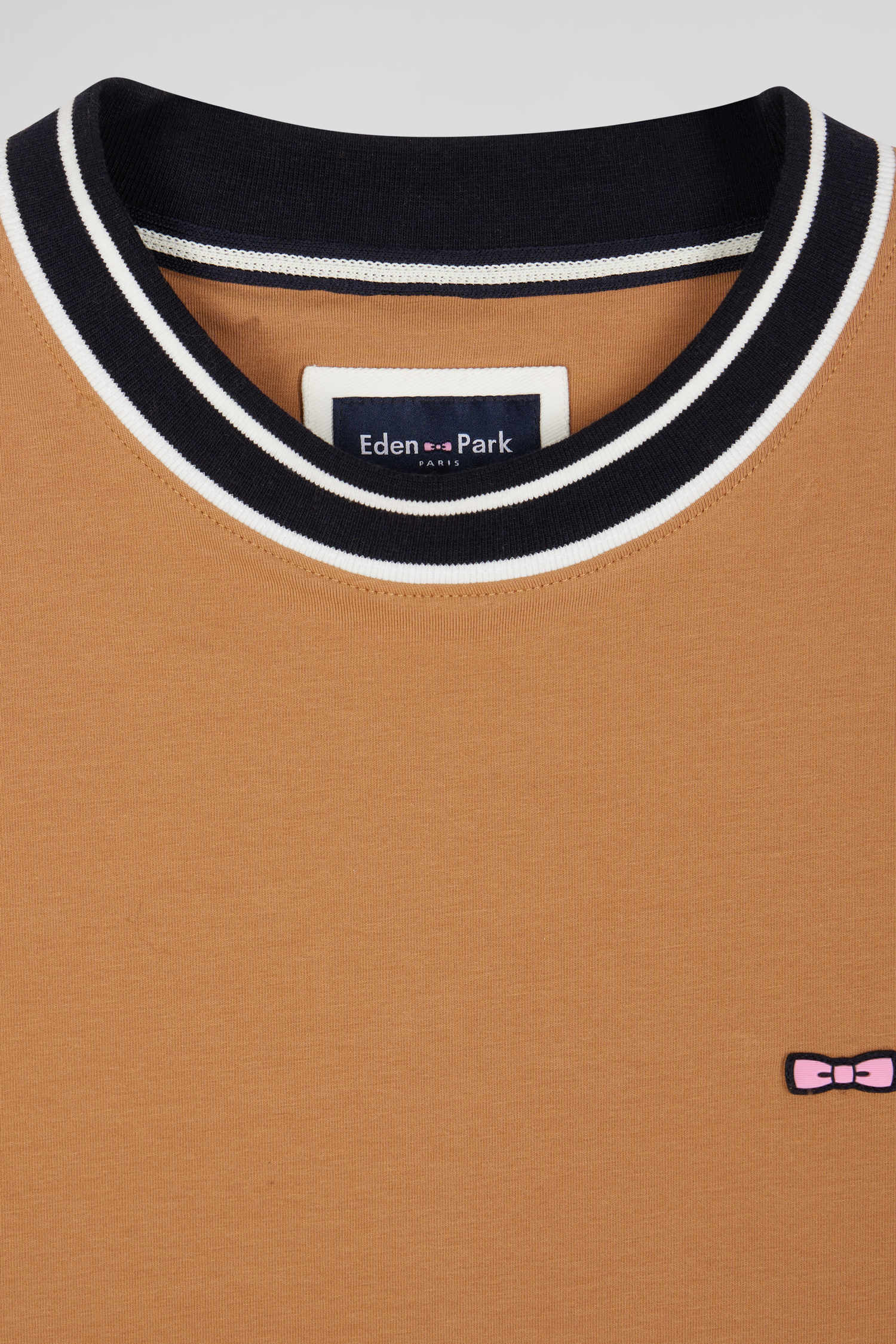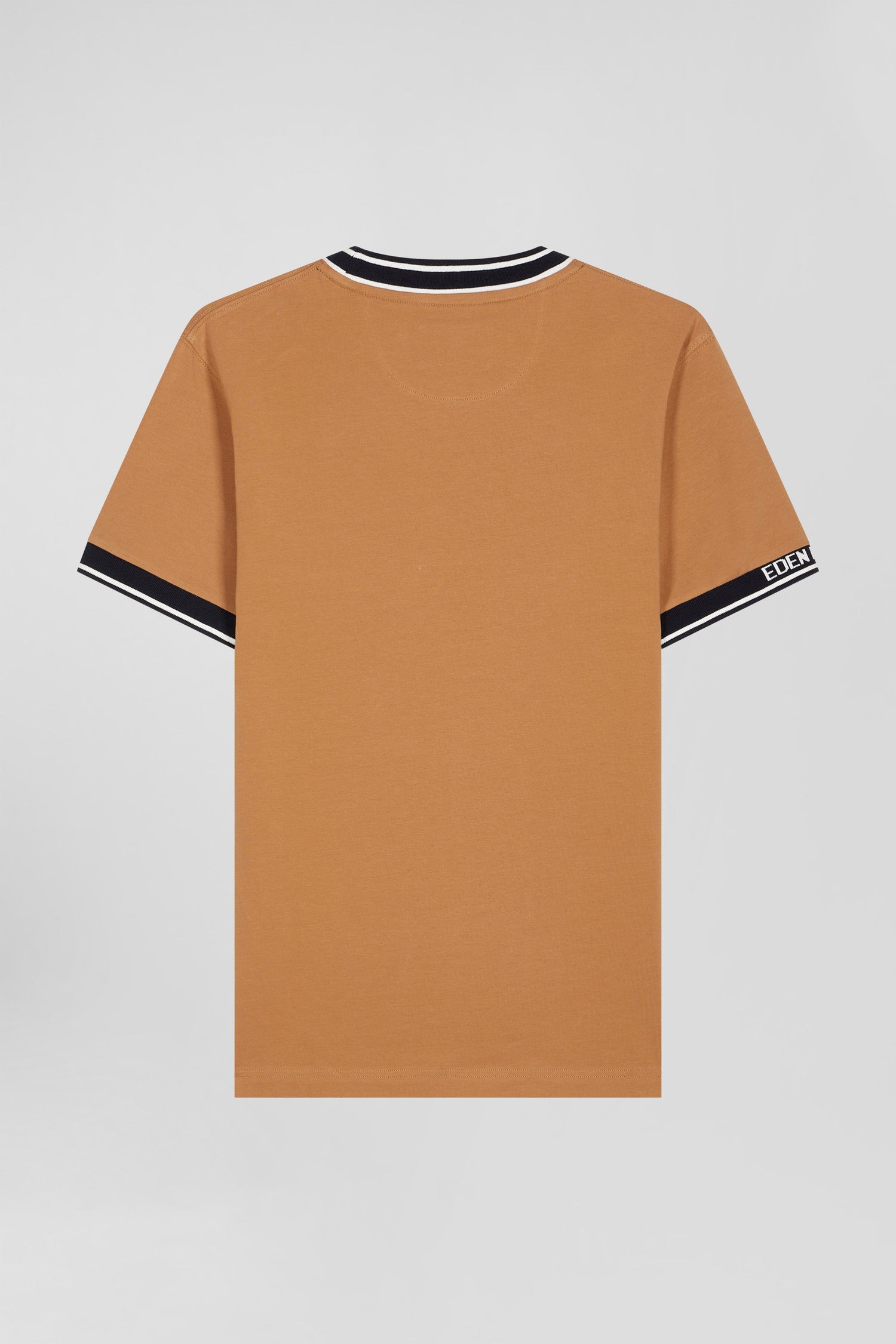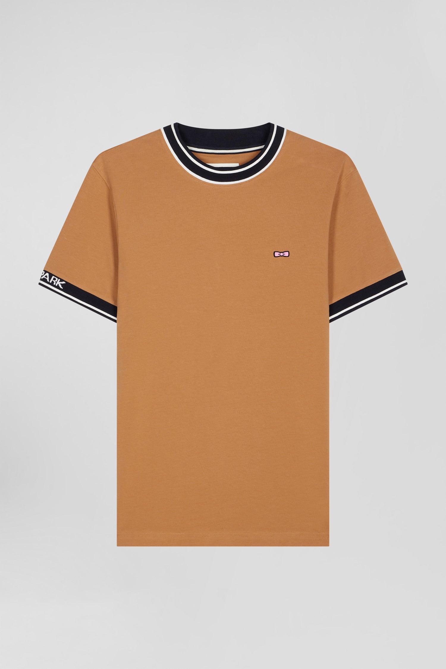 T-shirt manches courtes en coton camel coupe Slim bords-côtes Eden Park