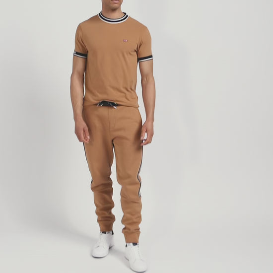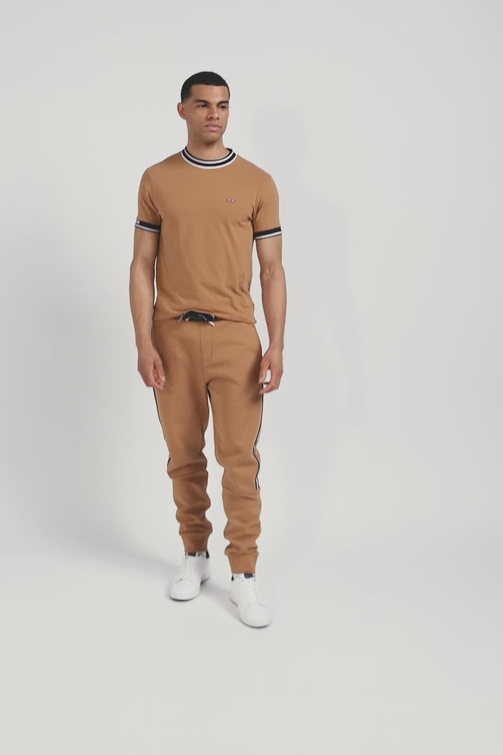 Pantalon jogging en coton mélangé camel galon rayé coupe Regular