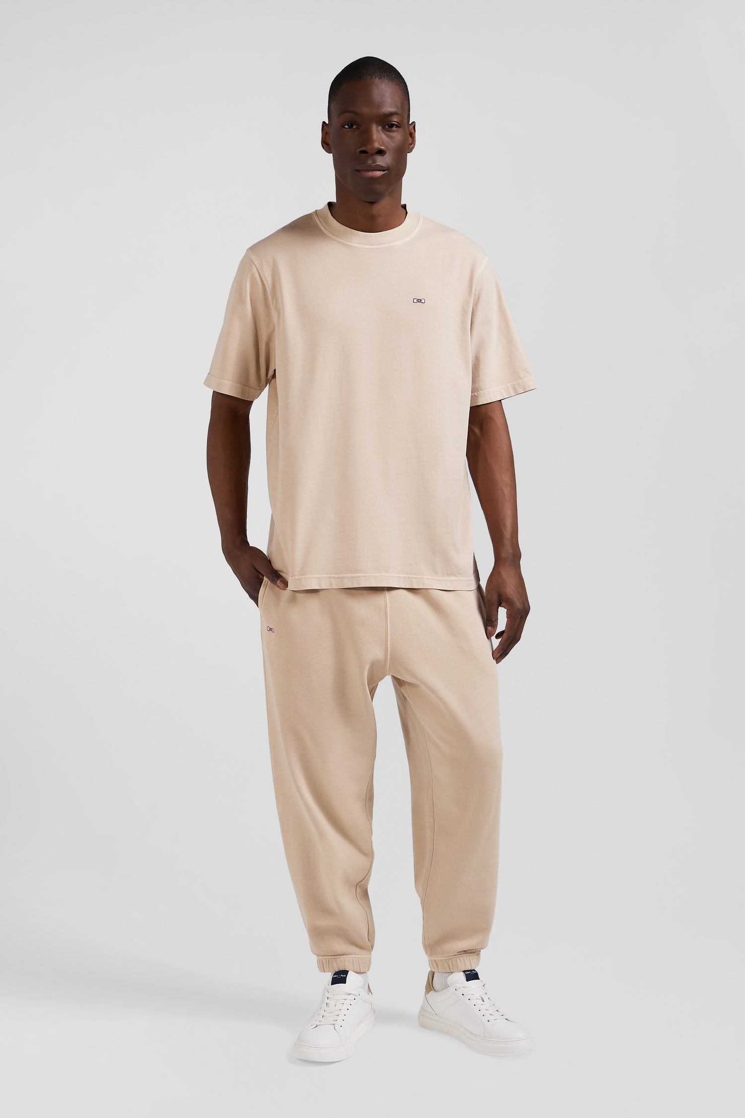 Jogging unisexe en molleton coton beige surteint coupe Relaxed