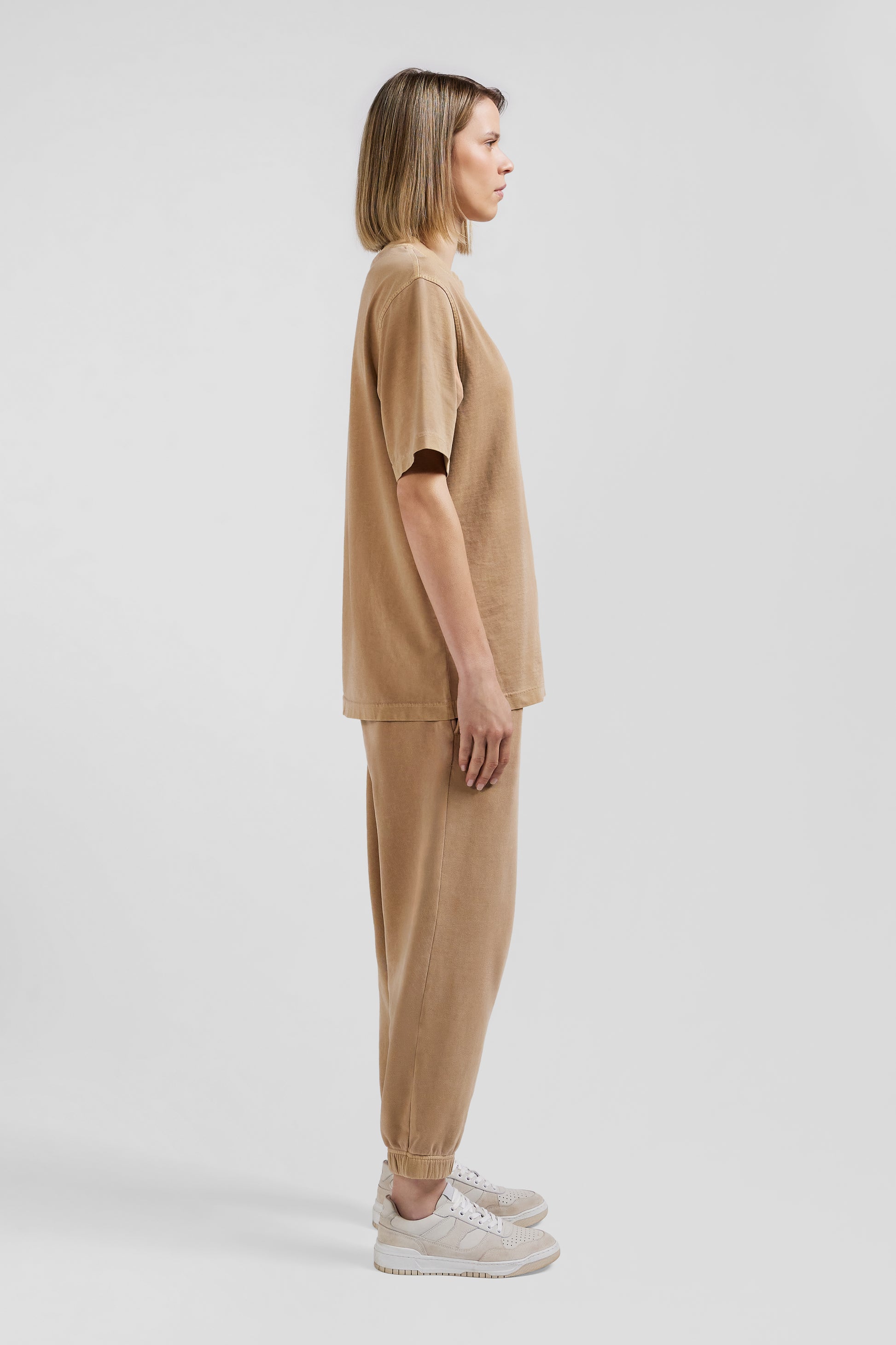 T-shirt manches courtes unisexe en coton surteint uni noisette coupe Oversized