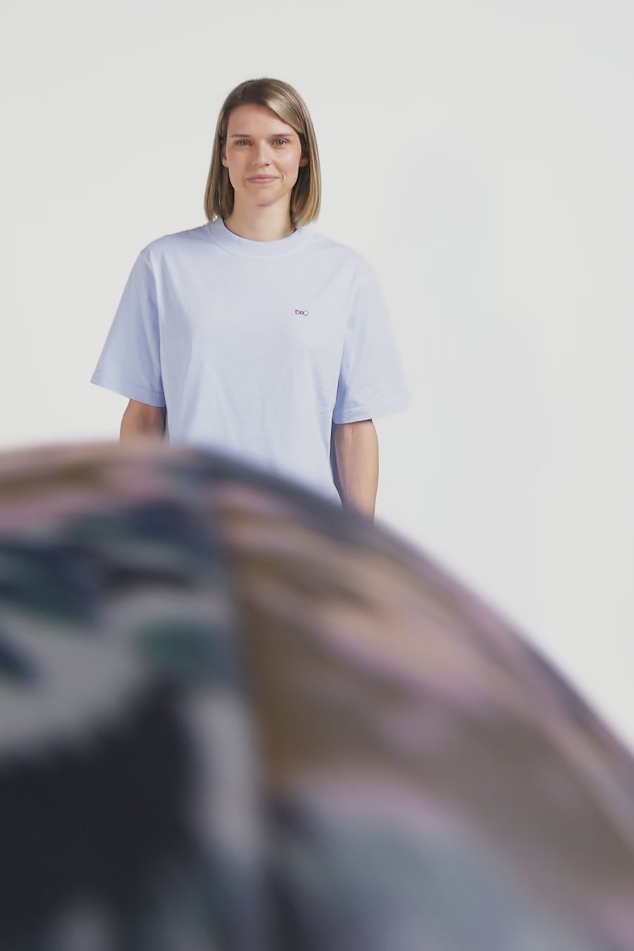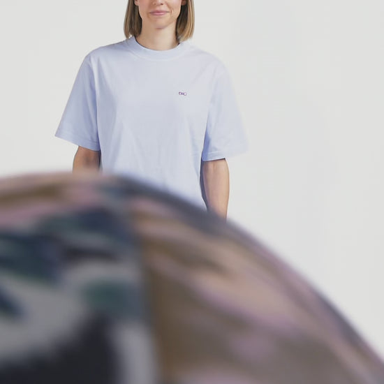 T-shirt manches courtes unisexe en coton surteint uni ciel coupe Oversized