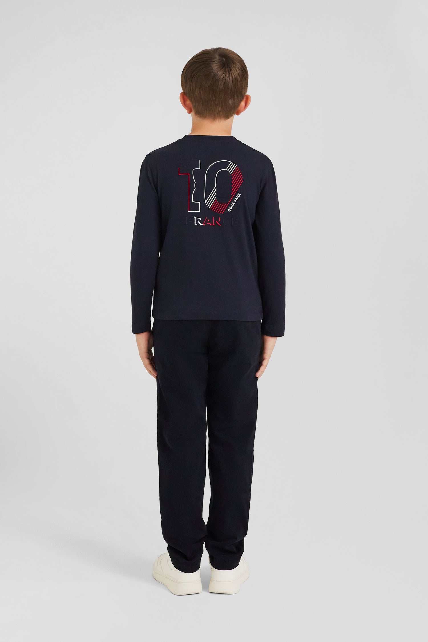 T-shirt manches longues en coton bleu marine broderie XV de France coupe Regular